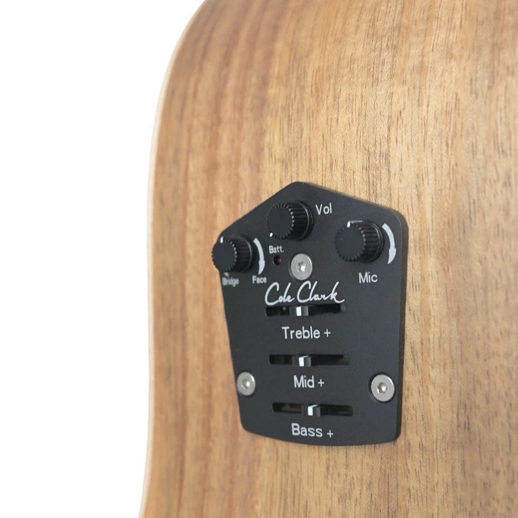 The Cole Clark FL2EC-RDBL Dreadnought guitar offers the ultimate control of the acoustic environment using our patented Natural Pickup system. The Redwood top with Australian Blackwood back and sides bring open and harmonically complex tones, while the River She Oak fingerboard allows for smooth and comfortable playing.