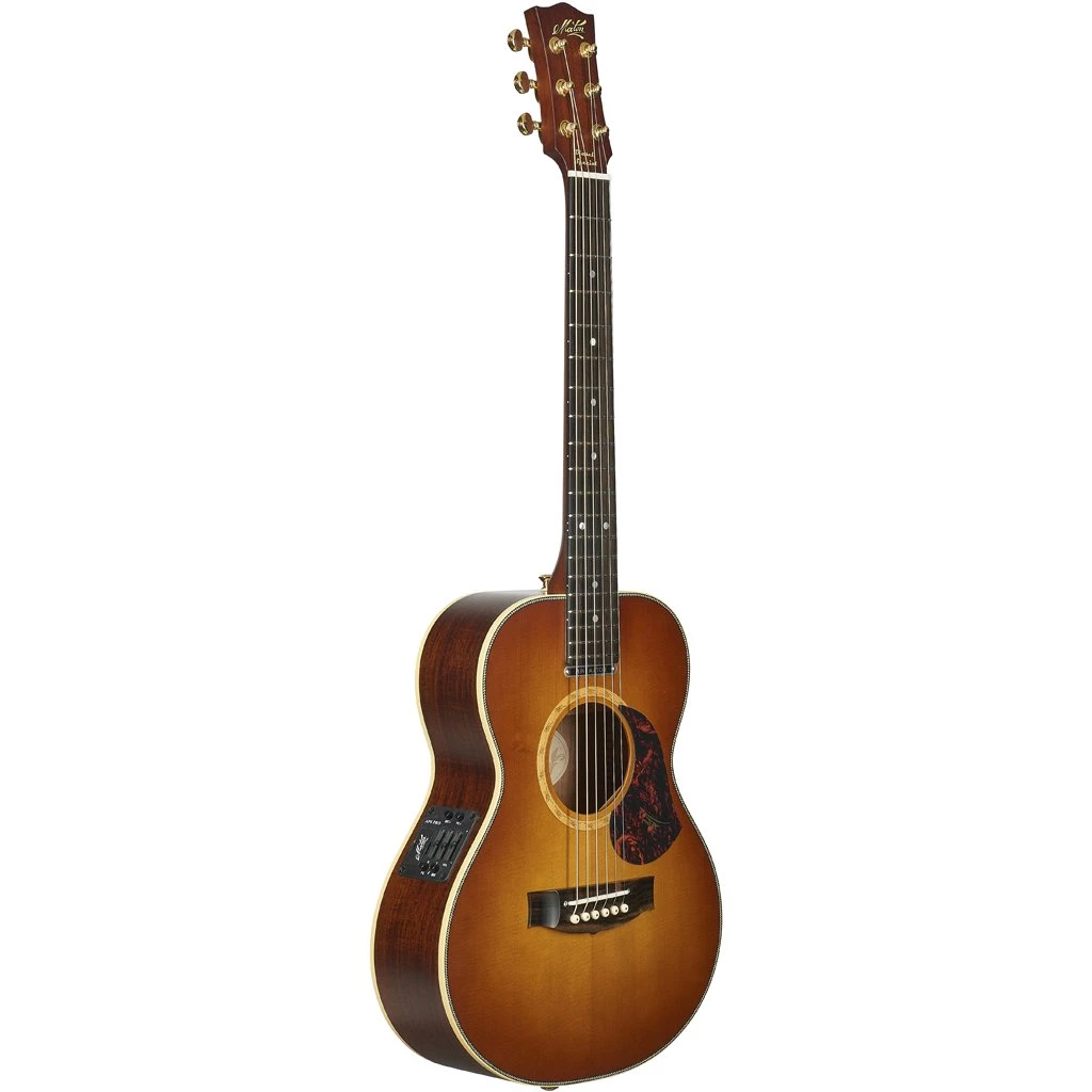 The Mini Maton Diesel Model is a small bodied guitar with a very big voice. Though it is a lot smaller than a standard dreadnought, this guitar packs a punch well above its weight.. This models features an “AA Select” Grade Solid Sitka Spruce top, solid blackwood back and sides, AP5 pickup system, gold grover machine heads, and a Vintage Amber Stain.