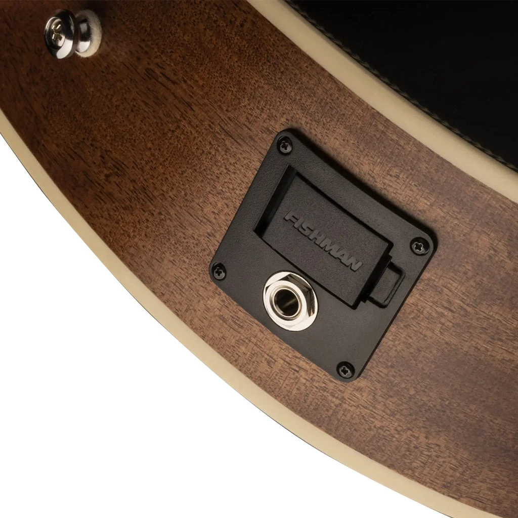 Parlor-sized acoustics can be miscategorized because of their size but make no mistake this is a professional-grade instrument. Plug in, and the Fishman GT1 pickup system delivers dynamic, organic tone, so whether writing, recording, or performing the P20E is sure to impress. This electronics system features an undersaddle pickup and soundhole mounted preamp with easy-to-access volume and tone controls, which essentially transforms what some may consider a “couch guitar” into a workhorse stage instrument.