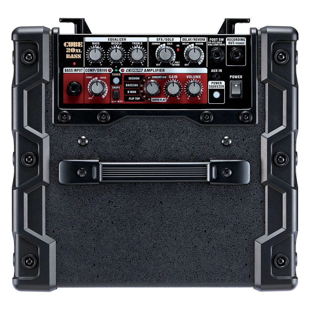 The most portable of the family, the CUBE-20XL BASS, features 20 watts of power, an 8-inch custom speaker, six COSM amp models, pro-quality effects (Reverb, Delay, Chorus, Solo, Poly Octave, Compression, and Overdrive), Power Squeezer for big sound at low volume, and 3-band EQ.