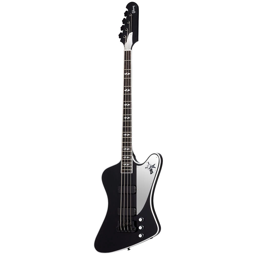 Gene Simmons is a legendary rock icon and the bassist from KISS, and his new Gibson Gene Simmons G2 Thunderbird Bass reflects his tastes. Designed to meet the musical needs of modern bassists, it features the classic Reverse Thunderbird™ body and headstock shape. The G2 Thunderbird Bass is voiced with a pair of powerful T-Bird pickups, each with individual Volume controls and paired with a master Tone control. The bound ebony fretboard features pearloid reverse split diamond inlays. A Graph Tech® nut and Hipshot® Mini Clover tuners keep the tuning rock-solid, while the other end of the strings anchor to a Hipshot® Bass Bridge. The back of the headstock features a G2 logo. The Ebony nitrocellulose lacquer finish is paired with Black Chrome hardware and a Mirror Plex truss rod cover and Mirror Plex pickguard with a laser engraved custom Gene Simmons logo. A modern hardshell case is included.