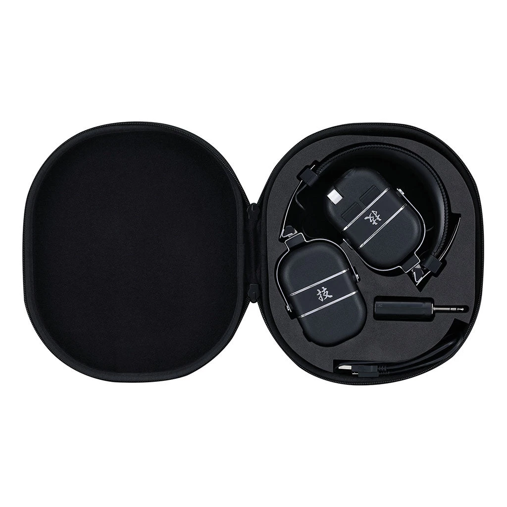 - High-density foam insert with cutouts for the headphones, WL-T transmitter, and USB charging cable