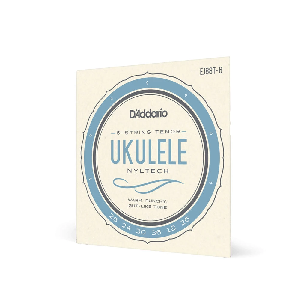 EJ88T-6 is a string set for 6-string tenor ukulele, optimized for GCEA tuning. Nyltech strings utilize a proprietary formulation that produces the optimal combination of warm yet punchy tone, emulating the tonal characteristics of natural gut strings.