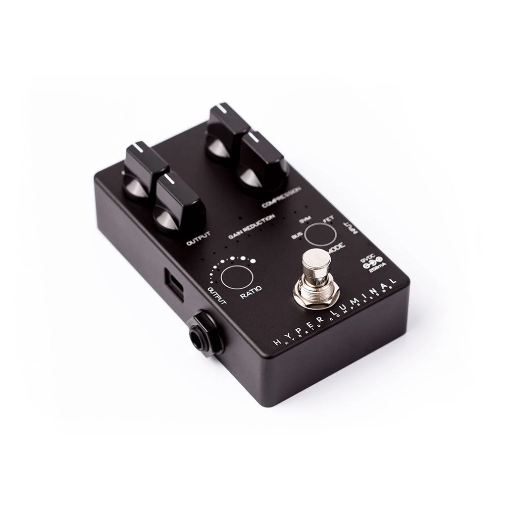 The Hyper Luminal Compressor features the first hybrid design in a compressor pedal: an analog VCA controlled by a digital side-chain allowed us to capture and include the characters of some of the most legendary compressors in history while keeping the signal path completely analog.