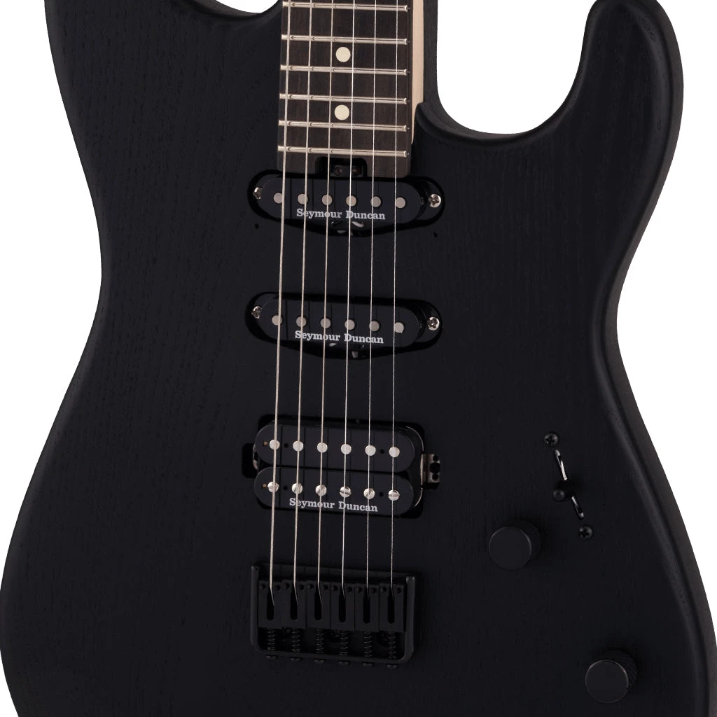 Extensive tonal variations are on top with a five-way blade pickup switch, volume control and a no-load tone control that operates like a standard tone control from positions one through nine, and removes itself from the circuit at position ten for transparent sound, letting the full natural voice of the guitar shine through. This model is also outfitted with a Charvel® HT6 string-through-body bridge for precise intonation and improved sustain.