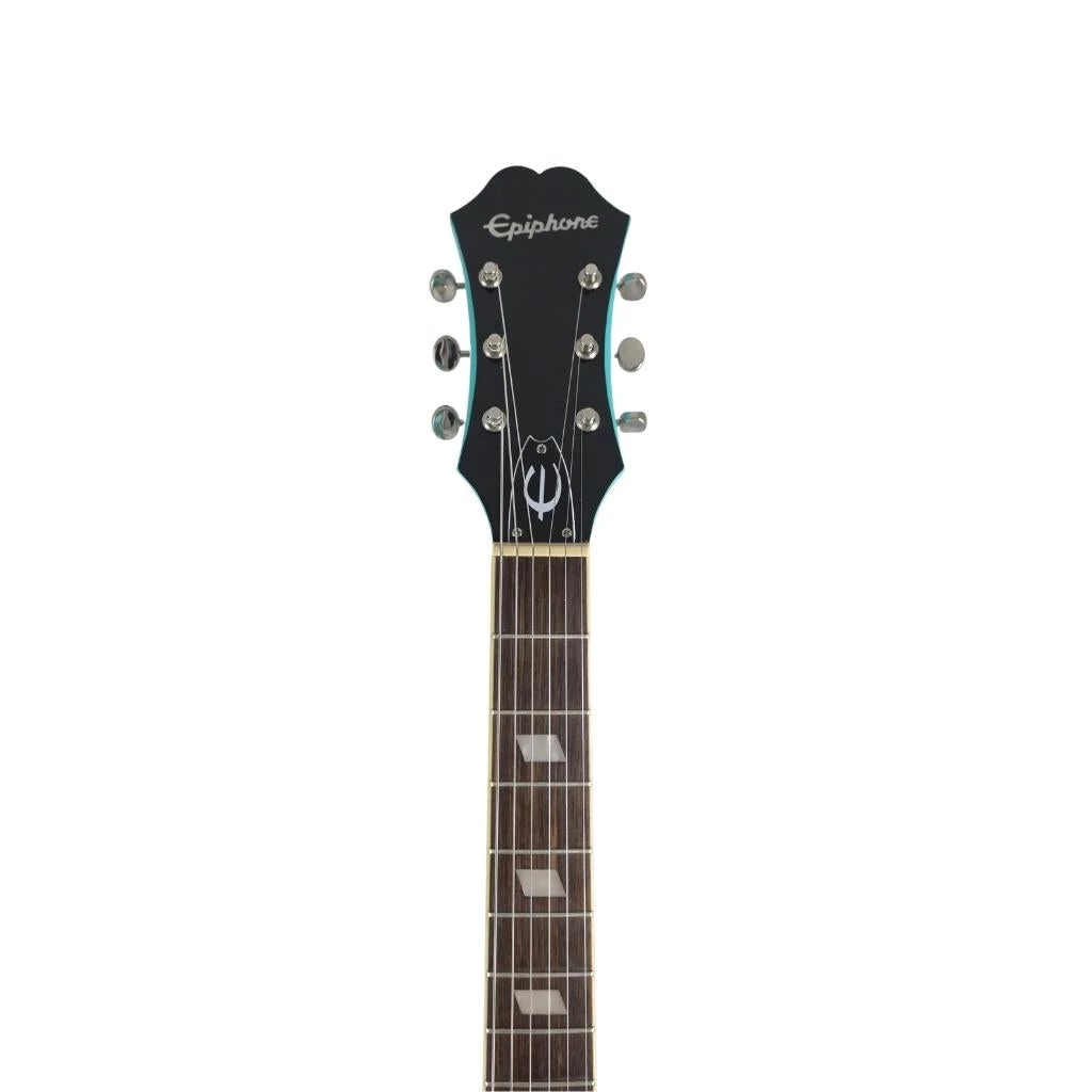Epiphone presents the Casino Coupe, the iconic hollowbody Casino reborn in a smaller ES-339 body size. Featuring new Epiphone Dogear P-90T Classicâ„¢ single coil pickups, a Mahogany neck, and vintage styled machine heads. Now available in Natural, Vintage Sunburst, and new Turquoise color finishes.