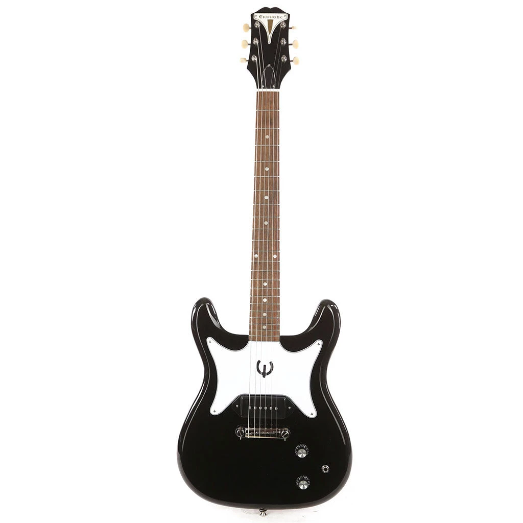 First introduced in 1958, the Epiphone Coronet is one of Epiphone’s first and most successful original solid body electric guitar designs. The latest version brings back many of the features of the early Coronet models including the symmetrical double-cutaway mahogany body with a single Epiphone PRO™ P-90 Dogear pickup, three on a side reduced sized Kalamazoo headstock with Epiphone Bikini badge and ivory button tuning machines, and a white butterfly pickguard with foil E logo. The Epiphone Coronet comes equipped with a glued-in mahogany neck with a medium C profile, Indian laurel fretboard with 12″ radius and 22 medium jumbo frets, 1 volume and 1 tone control with CTS® potentiometers, and an Epiphone Lightning Bar compensated wraparound bridge.