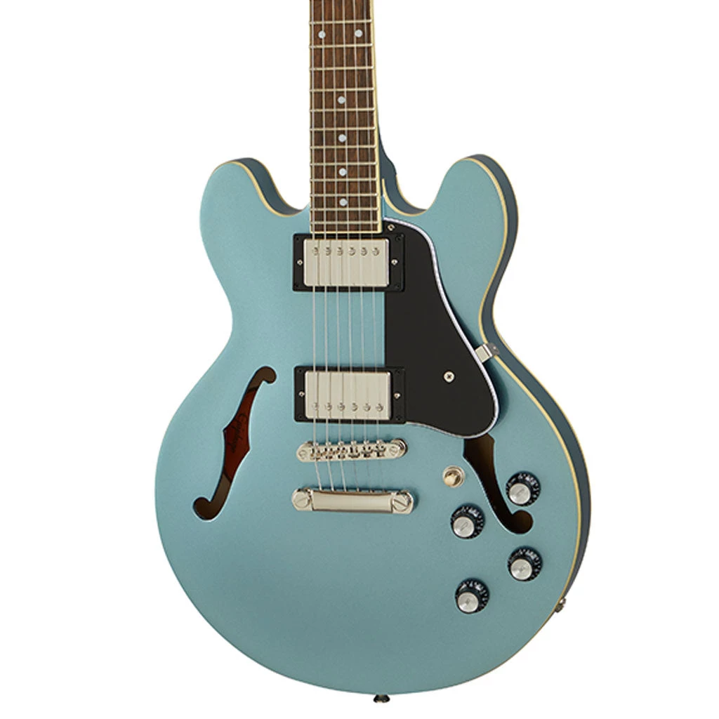 Epiphone’s “Inspired by Gibson” ES-339 is designed for those seeking the tone and look of an ES-335, but in a slightly smaller, lighter instrument. The hand-rolled C-shaped mahogany neck reminds players where it all started. A pair of Epiphone Alnico Classic PRO™ humbuckers showcases the versatile Gibson ES™ tone that players have craved for over 60 years. Tuning stability and precise intonation are provided by the Graph Tech® NuBone® nut, Grover® Rotomatic® tuners, and Epiphone’s exclusive LockTone™ bridge and tailpiece, which also add more sustain to your tone. Impressive gloss finishes include Cherry, Pelham Blue, Vintage Sunburst, and Natural. Optional hardshell case or EpiLite case sold separately.