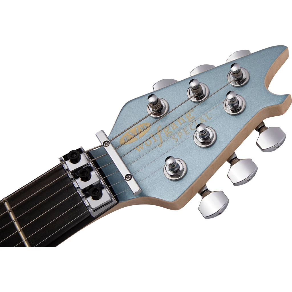 The Wolfgang Special features a basswood body with an arched top and a robust graphite-reinforced bolt-on quartersawn maple neck. The neck is carved and rolled to Eddie Van Halen’s exacting specifications and features a hand-rubbed satin urethane finish on the back. Primed for high performance, energetic riffing and blazing leads, the 12”-16” compound radius ebony fingerboard has 22 jumbo frets and pearloid dot inlays. Truss rod adjustments have also never been easier thanks to a spoke wheel conveniently located at the base of the neck.
