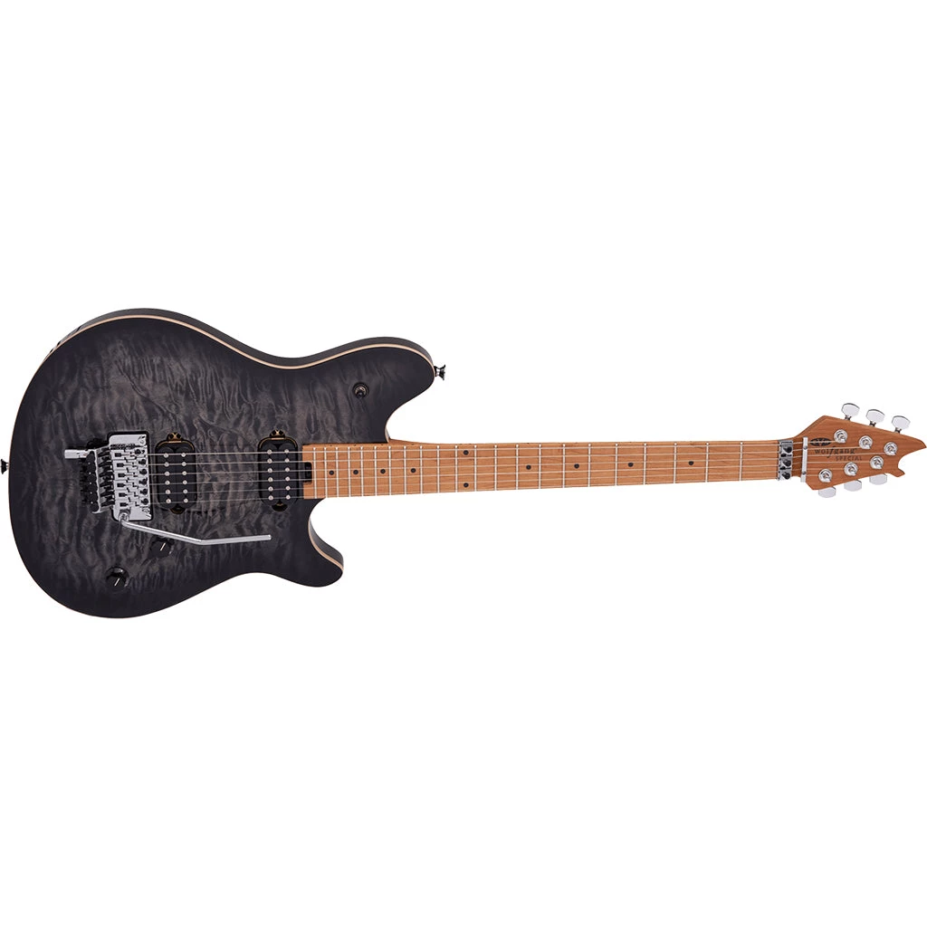 The Wolfgang Special QM features a basswood body with an arched quilt maple top and a robust graphite-reinforced bolt-on quartersawn baked maple neck. The neck is carved and rolled to Eddie Van Halen’s exacting specifications and features a hand-rubbed satin urethane finish on the back. Primed for high performance, energetic riffing and blazing leads, the 12”-16” compound radius baked maple fingerboard has 22 jumbo frets and black dot inlays. Truss rod adjustments have also never been easier thanks to a spoke wheel conveniently located at the base of the neck.