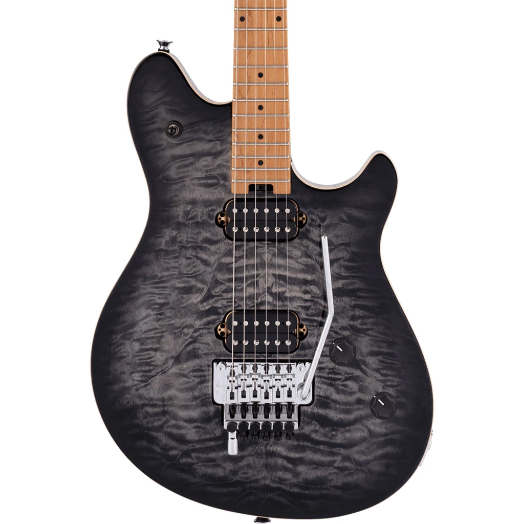 A pair of flagship custom-designed EVH® Wolfgang Alnico 2 humbucking pickups are mounted directly to the body, providing dynamic yet articulate voicing, as well as endless sustain for powerful chords and melody lines. A sturdy and dependable EVH-branded Floyd Rose® locking trem and Floyd Rose locking nut work in tandem for precise tuning even with extreme changes in pitch, while the EVH D-Tuna® retunes to drop-D and back with strict accuracy at the flick of a finger. The volume knob with treble bleed circuit has a 500K EVH Bourns® low friction pot for smooth swells and a tone control knob with a 250K Bourns high friction tone pot that prevents accidental tone shifting.