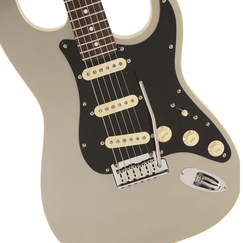 The Modern Series is the latest Made-in-Japan product line developed to provide the highest level of playability and tone to modern players with significantly playing skills. The high quality 3-ply alder body feature a sleek, stylish design, and the selected rosewood fingerboard neck is equipped with luminous side position dot inlays for improved visibility on stage. The new heel cut design and compound radius both contribute to enhanced playability, with smooth access to higher frets. Locking tuners provides tuning stability, and the bridge is equipped with a pop-in arm/two-point tremolo. 4th Generation Noiseless pickups deliver superior clear tone while reducing unwanted noise. Enjoy the next-generation Stratocaster® armed with cutting edge modern specifications. Deluxe Gig Bag included.