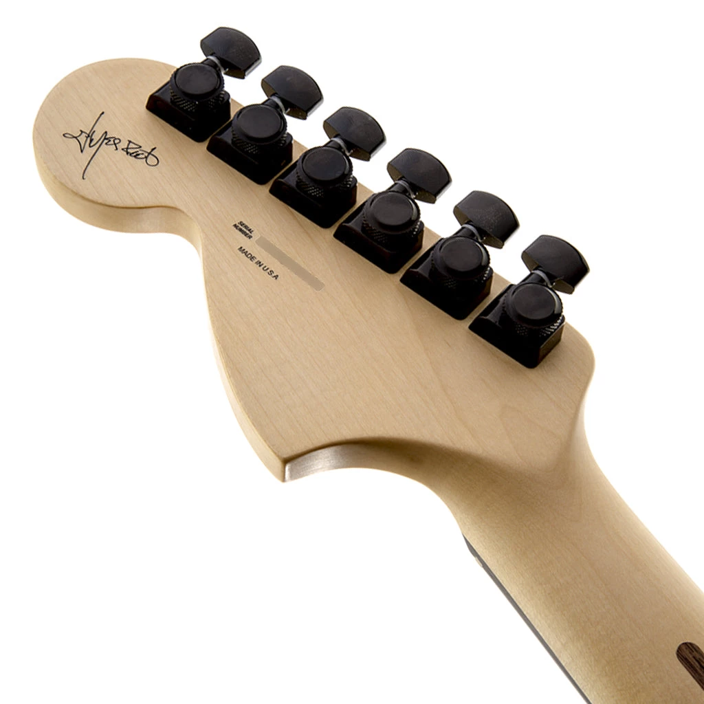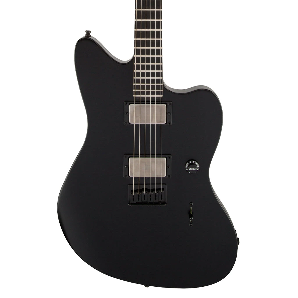 Stark, dark and menacing, the crushing Jim Root Jazzmaster guitar has got to be the most distinctively minimalist version of the instrument ever devised in the model’s entire half-century history. At the behest of the towering Slipknot guitarist, gone are the dual tone circuits and barrage of controls. Gone are the fret position markers and enormous chrome bridge. Gone, in fact, is pretty much everything typical of a Jazzmaster, replaced only by fearsome EMG® humbucking pickups with brushed nickel covers, single three-way switch and single volume knob, a hardtail bridge and little else.