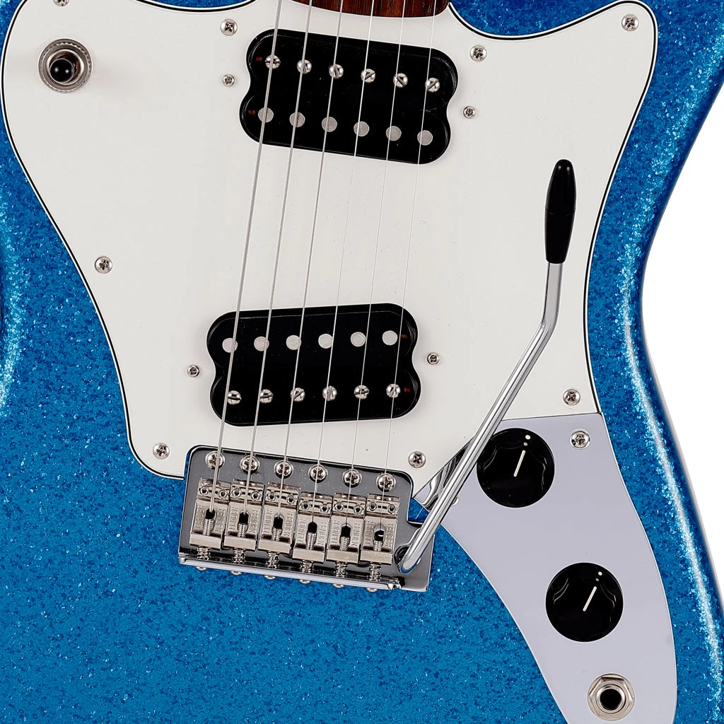 Basswood body with “U” shaped maple neck, 9.5 inch radius rosewood fingerboard and medium jumbo frets for smooth playability, while Dragster BB pickups and Vintage-Style Synchronized Tremolo bridges provide playability and sound.