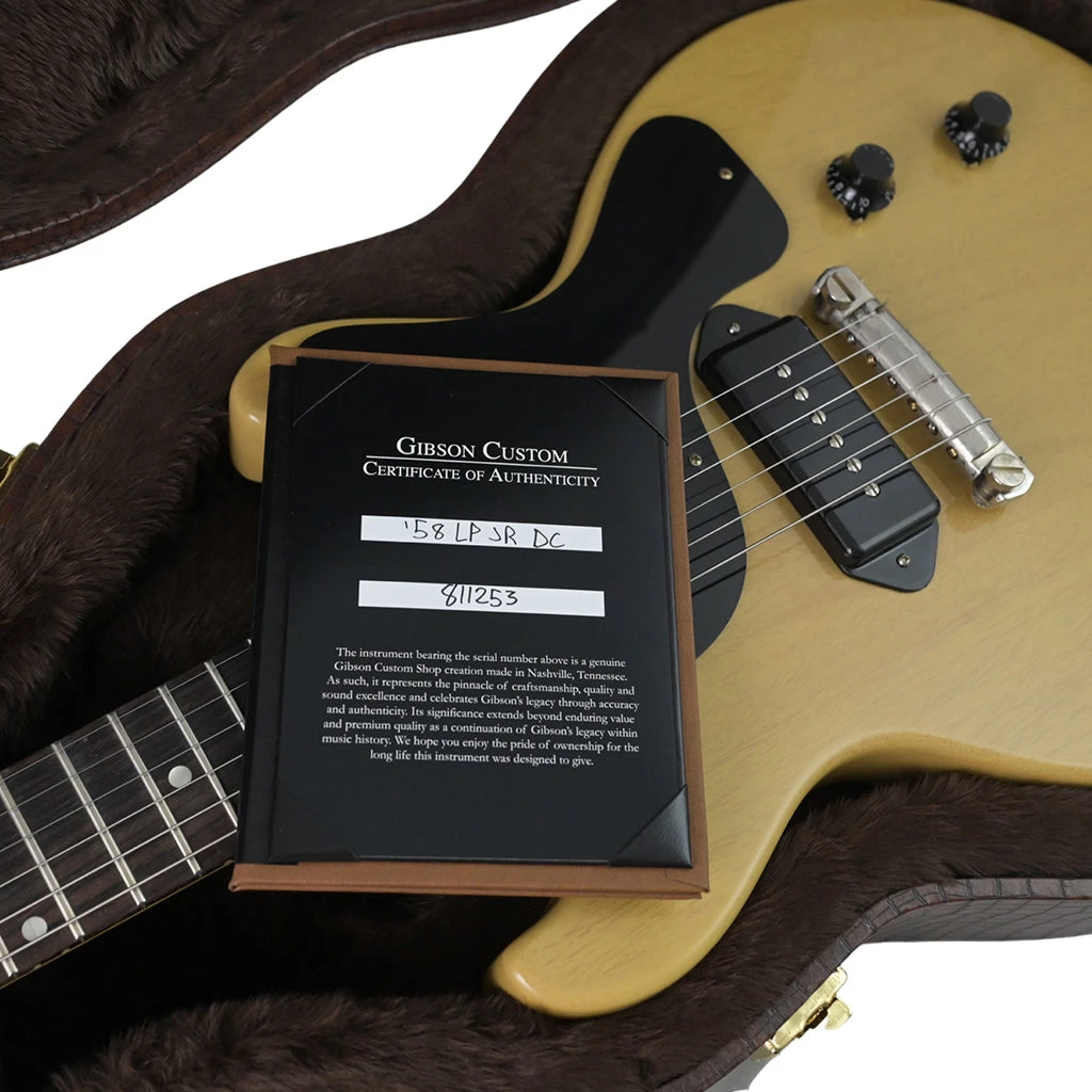 1958 was a monumental year for Gibson in which a whole new lineup of now-famous models were introduced. One of them was the redesigned “double cutaway” Les Paul Junior, which has since found its place in music history as a favorite of hard rock musicians. The extra fret access of the double-cut construction allows upper octave leads while the “simple is better” single-pickup setup projects only thick, heavy tone. Gibson Custom Shop has proudly revived the original recipe from 1958 for this Historic Reissue, from the solid mahogany and hide glue construction to the vintage-style wiring. It is an accurate and faithful replica in every possible way.