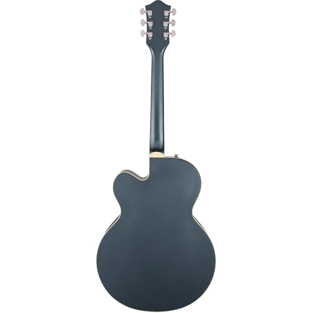 All the classic eye-catching style you’ve come to expect from Gretsch is here—vintage-style black control knobs, enlarged F-holes for increased acoustic projection, elegant aged white binding with upgraded purfling, slick-looking nickel hardware, arched laminated maple construction and three-ply tortoise pickguard. Nearly impossible to put down once you pick it up and start playing, the G2420T is an astounding take on the classic sound and style you’ve come to expect from Gretsch.