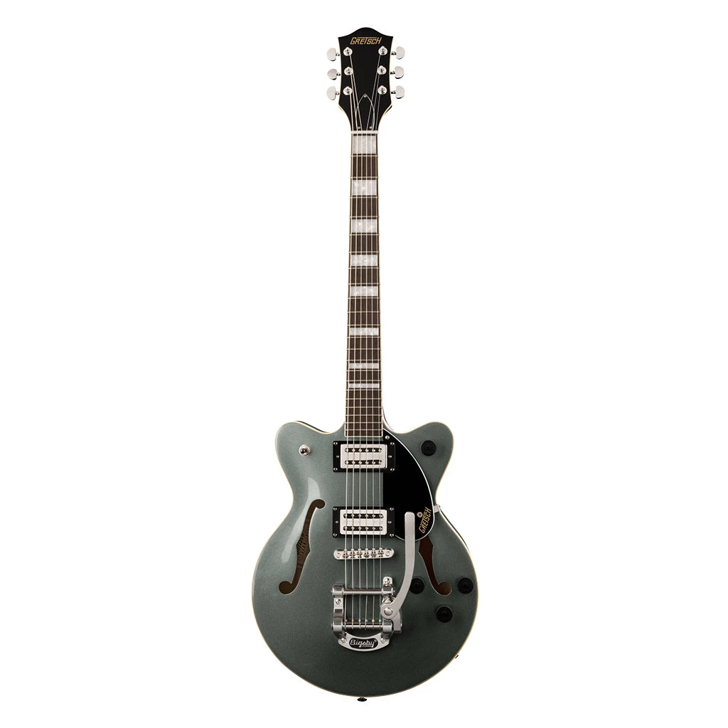 The exhilarating G2655T Streamliner™ Center Block Jr. Double-Cut with Bigsby® is designed for three simple things—high gain-friendly performance, slick, easy playability and spectacular style. A sleek music machine, the G2655T cranks out the hits with updated features while staying true to That Great Gretsch Sound!™ that’s been a vital component of rock ‘n’ roll since its inception.