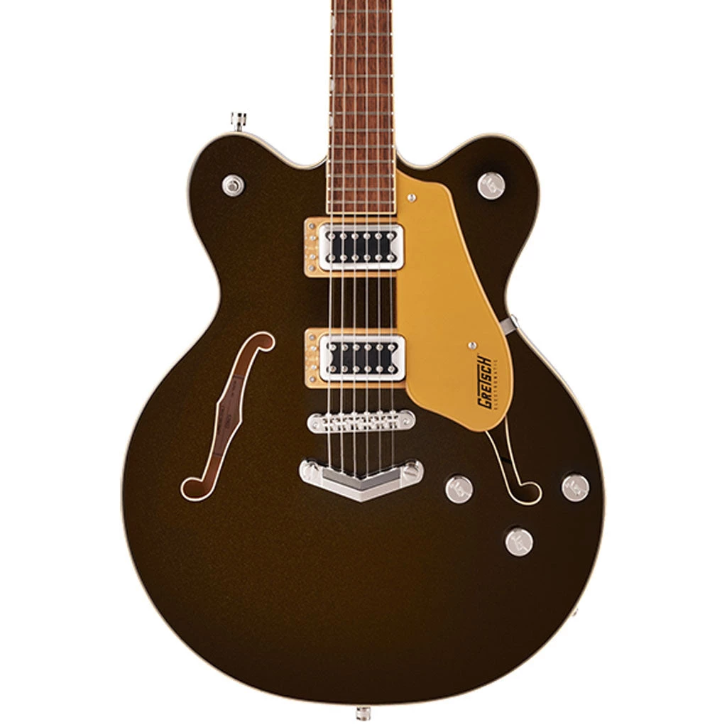 Painstakingly crafted with essential Gretsch sound, style and playability, the G5622 is offered in three stunning finishes: Aged Walnut, Black Gold or Bristol Fog with nickel hardware and aged white body binding with multi-ply purfling. The Aged Walnut and Black Gold finishes feature a gold pickguard, while Bristol Fog comes with a black pickguard.