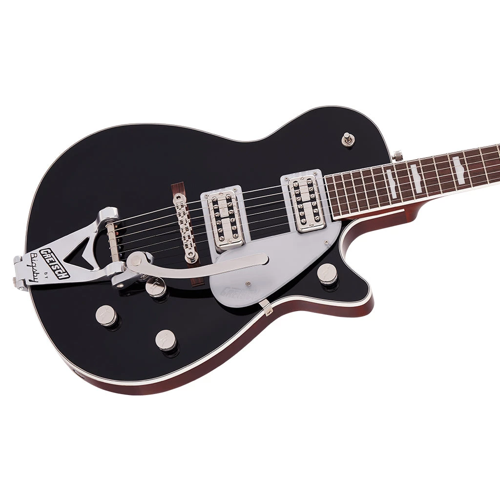 This grunge-era beauty comes in classic Black with silver pickguard, late-’80s black headstock with Gretsch logo and horseshoe inlay and nickel hardware.