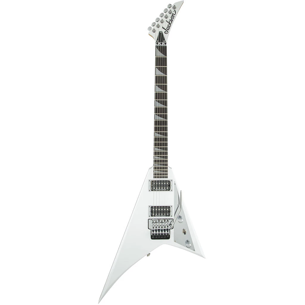 The most recognizable of Jackson’s myriad offerings, this guitar boasts the familiar aesthetics that make Jacksons in demand for performing guitarists. From chrome hardware to the unique inlays, pointed 6-in-line headstock and revolutionary body designs, this instrument is very distinctly a Jackson creation. Jackson guitars don’t just push the envelope, they annihilate it—and the Pro Rhoads RR is no exception to the rule.