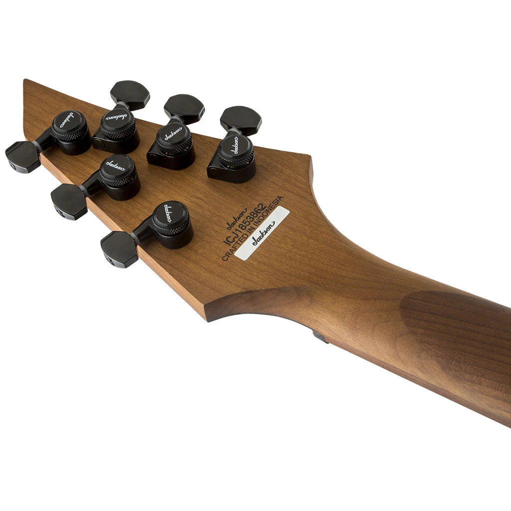 Available in Matte Blue Frost or Satin Black with a matching reverse Jackson 3×3 AT-1 headstock, this signature Pro Juggernaut also features a Jackson HT6 string-through-body hardtail bridge, Jackson sealed die-cast locking tuners and black hardware.