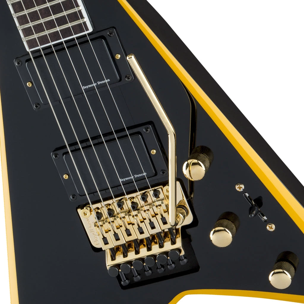 Engineered for the modern metaller, a pair of active Seymour Duncan® Blackout pickups deliver searing tone that can be further shaped by two volume knobs, a single tone control and three-way blade switch. The RRX24 is also equipped with a recessed Floyd Rose® Special double-locking tremolo system for outstanding sustain and solid intonation.