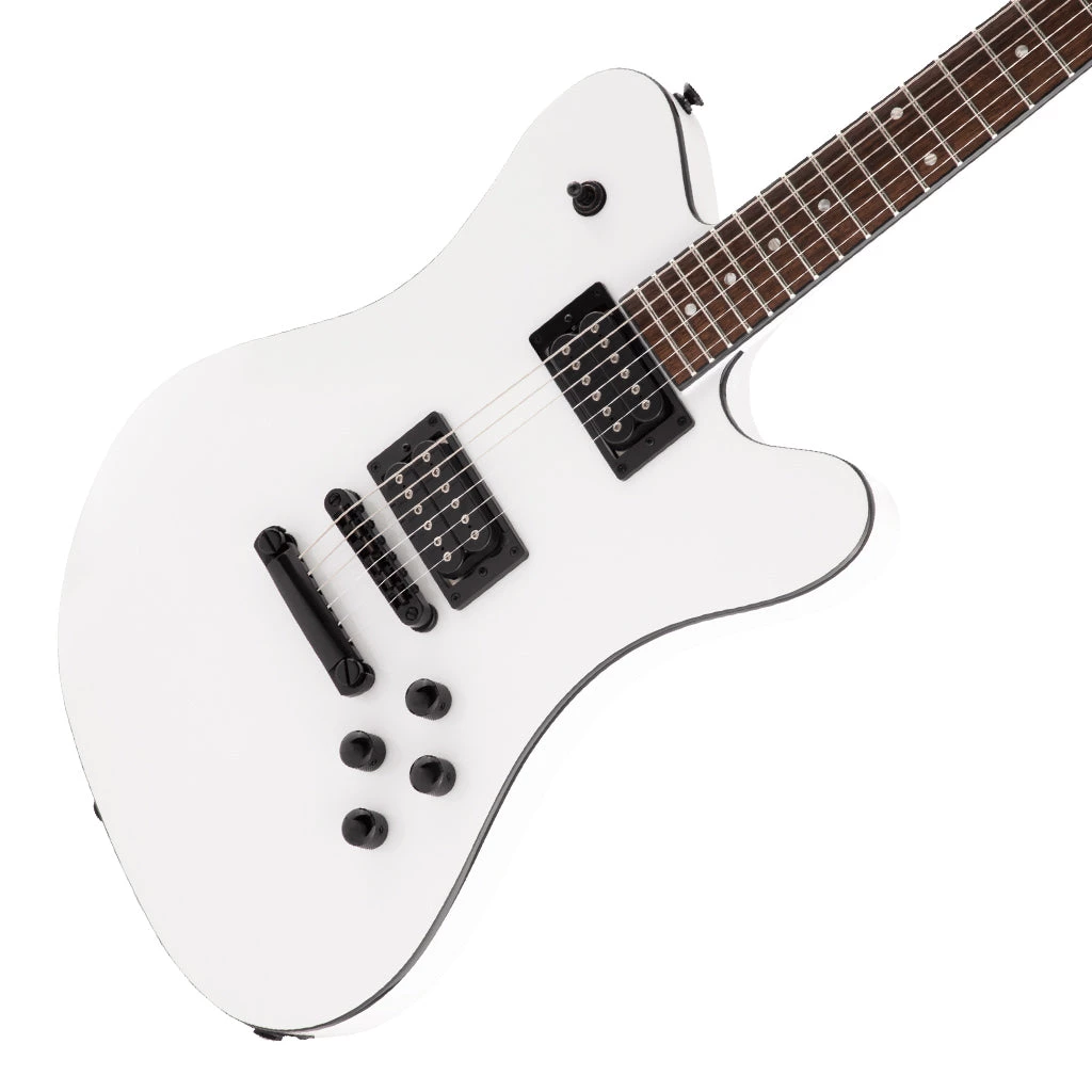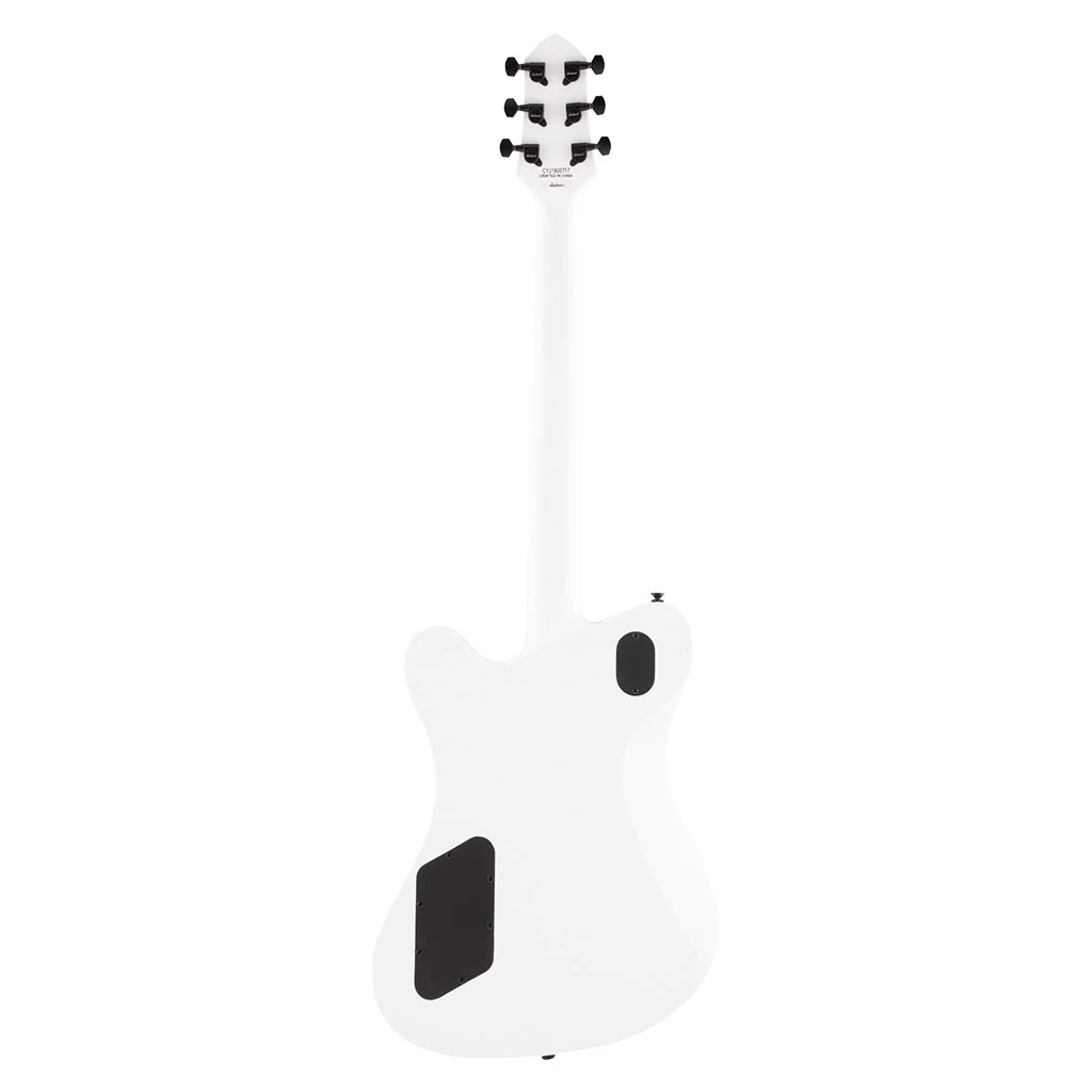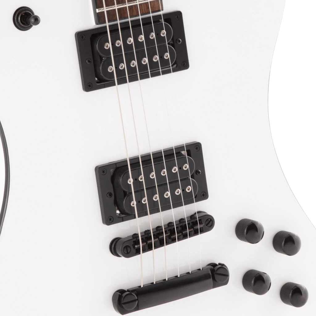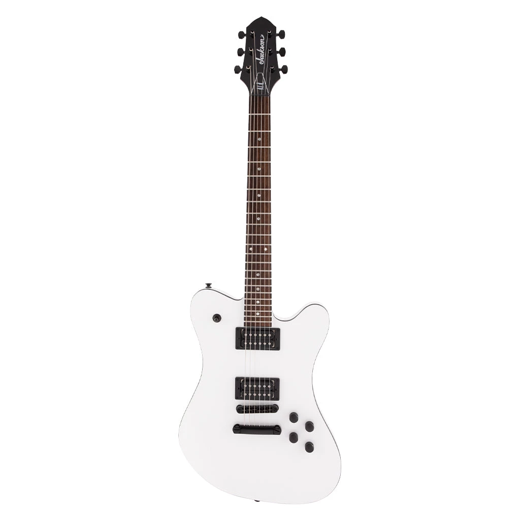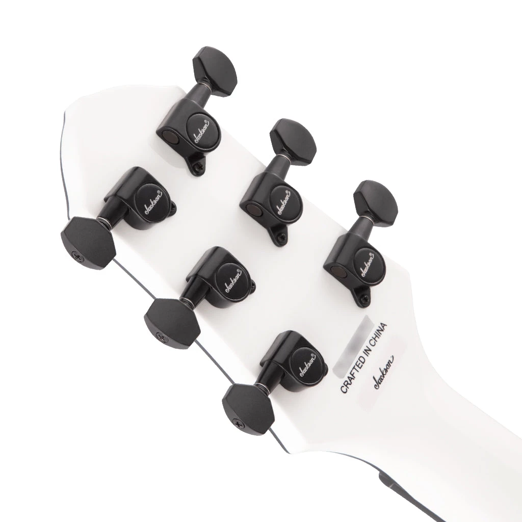 This beastly beauty is available in a stark Snow White finish with attractive black body binding, black hardware and a distinctive three-on-a-side Jackson MM Dominion headstock.