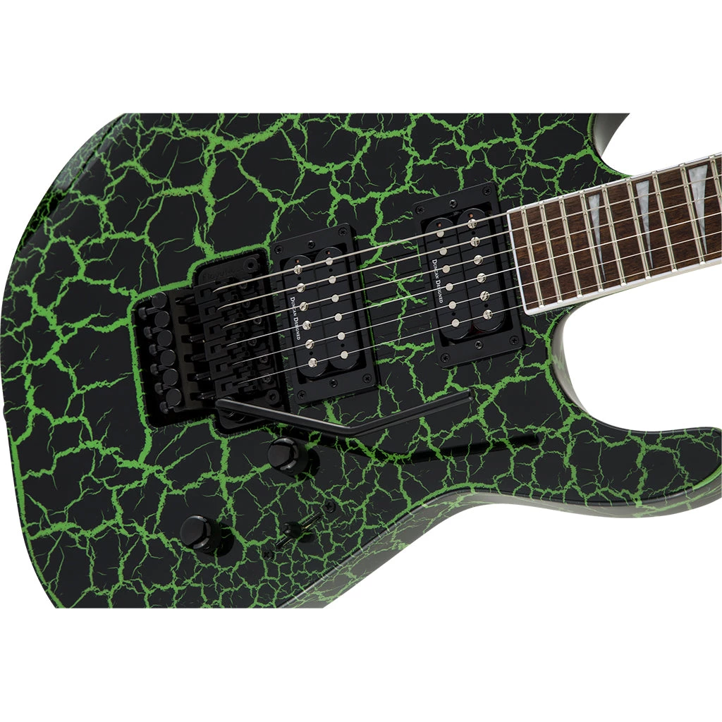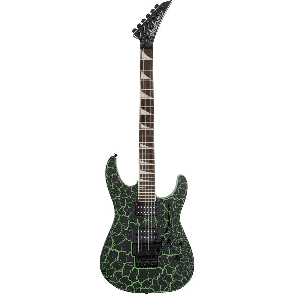 Ready to erupt, the SLX Crackle models are finished off with Jackson sealed die-cast tuners, black hardware and pointed 6-in-line headstock.