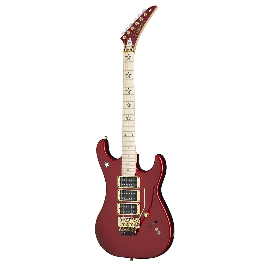 The 1980s classic Kramer Jersey Star returns as part of Kramer’s Icon Collection with the iconic mother of pearl Jersey Star logo, gold hardware, Seymour Duncan® JN and JB™ humbuckers, and a Floyd Rose® 1000 series tremolo and R2 1000 series locking nut. Available in Alpine White and Candy Apple Red Gloss finishes.