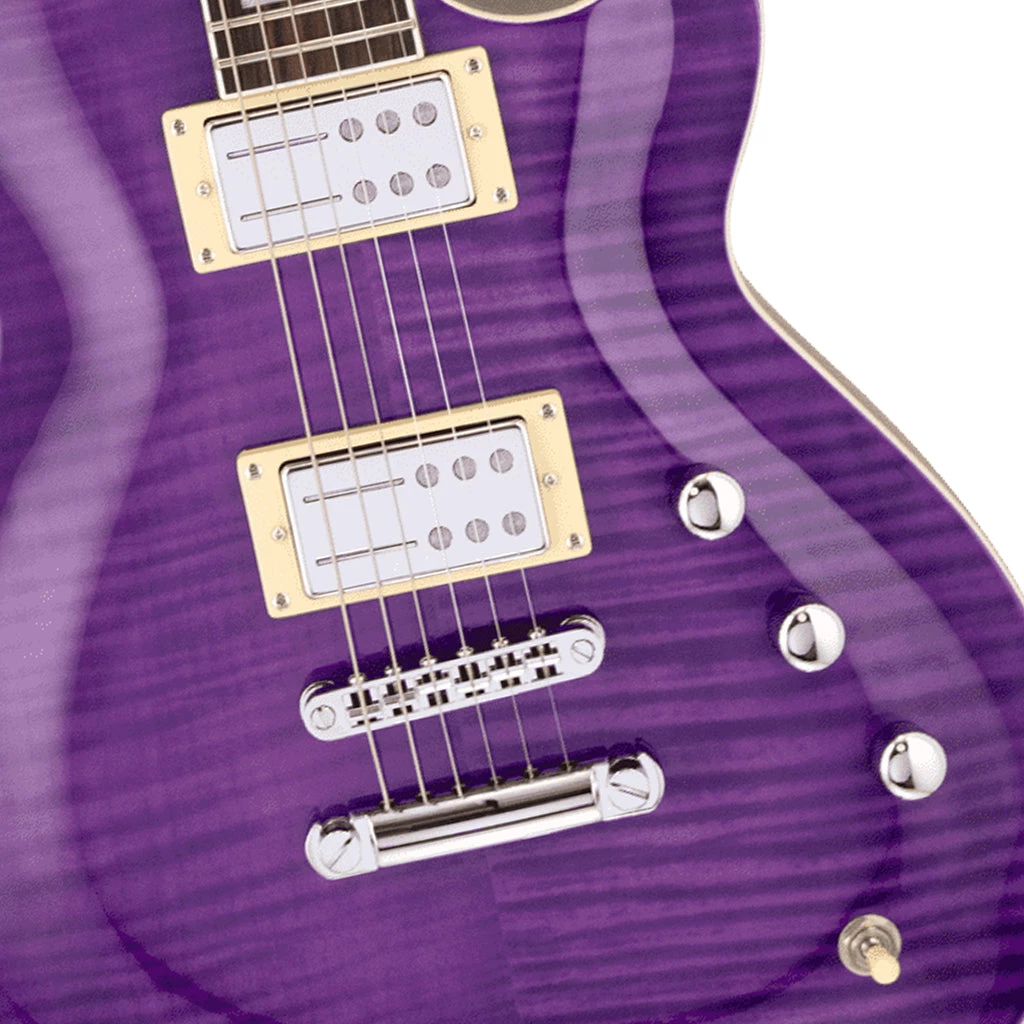 The Roundhouse wallops! The new Roundhouse RA is taking that wallop to another level! It’s the classic single cutaway reimagined for today’s player. This carved top set neck – a first for Reverend Guitars — has a massive tone but is lightweight and balanced. Every Roundhouse features a set of Railhammer Hyper Vintage Humbuckers, a flame maple top, a TOM stop-tail bridge, rosewood fretboards, and no pickguards. Perfect for all your rock-and-roll dreams!