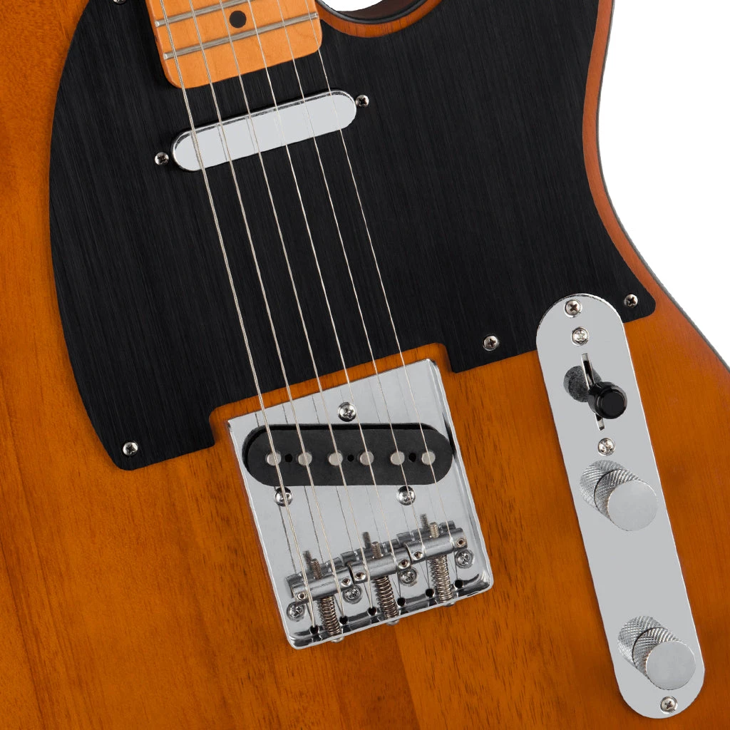 The Squier® 40th Anniversary Telecaster®, Vintage Edition is a soulful tribute model trimmed with a collection of classic features for the retro-minded Squier enthusiast. Featuring aged chrome hardware, an anodized aluminum pickguard, a vintage-tinted maple neck, an engraved anniversary neck plate and satin finish throughout, this Tele® honors the heritage of the Squier catalog and its ancestry. Player-friendly refinements of this commemorative model include a slim and comfortable “C”-shaped neck profile for an easy playing feel, vintage-style tuning machines and 3-saddle string-through-body bridge for authentic performance and style, and Fender-Designed single-coil pickups with alnico 5 magnets for familiar Tele tone.