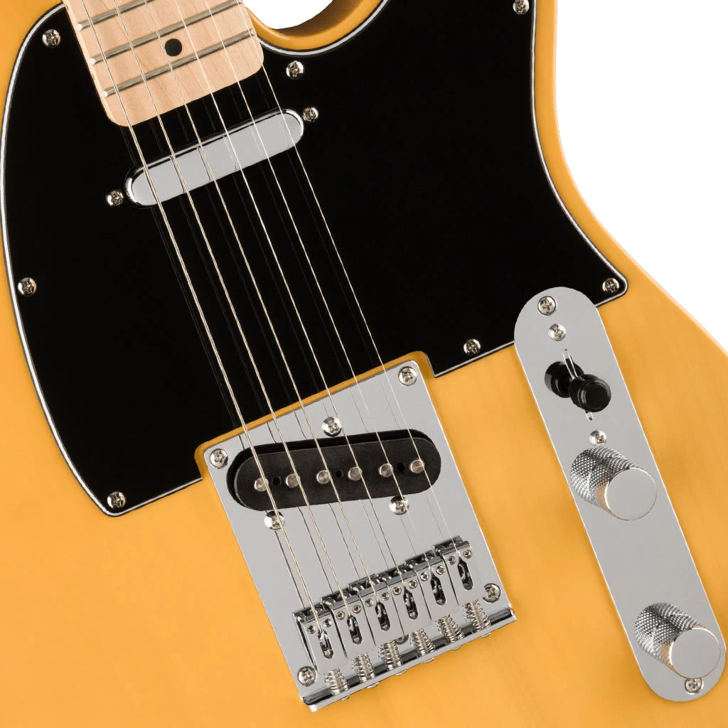 A superb gateway into the time-honored Fender® family, the Squier® Affinity Series™ Telecaster® delivers legendary design and quintessential tone for today’s aspiring guitar hero. This Tele® features several player-friendly refinements such as a thin and lightweight body, a slim and comfortable “C”-shaped neck profile, a string-through-body bridge for optimal body resonance and sealed die-cast tuning machines with split shafts for smooth, accurate tuning and easy restringing. Loaded with dual Squier single-coil Tele pickups with 3-way switching for genre-defying sonic variety, this model is ready to accompany any player at any stage.