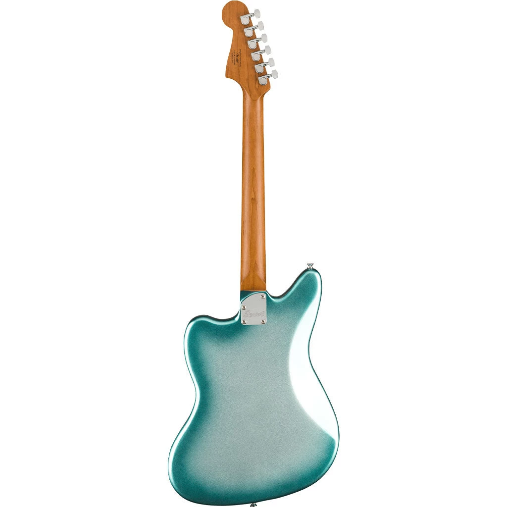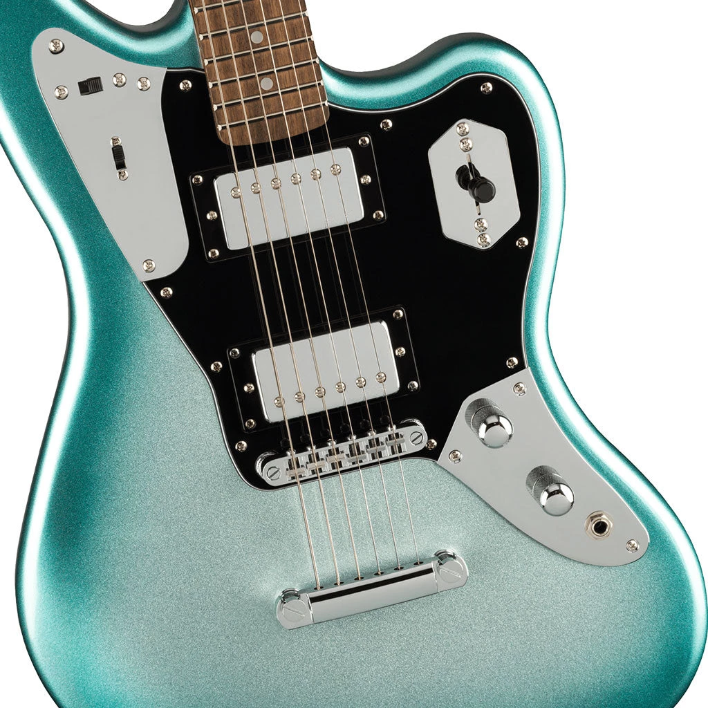 The Squier® Contemporary Jaguar® HH ST brings modern features and bold aesthetics to an iconic Fender platform to satisfy today’s most discerning and daring players. At the heart of this guitar is a pair of Squier SQR™ Atomic™ humbucking pickups with coil-tap and series/parallel switching on the upper control plate for a wide range of genre-defying sonic settings. The roasted maple neck was chosen for its optimal tone and stability, and a sculpted heel design allows for improved access all the way to the 22nd fret. High-performance components round out the feature list and include a fully adjustable bridge with stop tailpiece (ST) for rock-solid string feel, and a set of sealed-gear tuning machines with split shafts for smooth tuning action and easy restringing. Eye-catching styling cues include lustrous chrome hardware and a sleek painted headstock with chrome logos for a premium look.