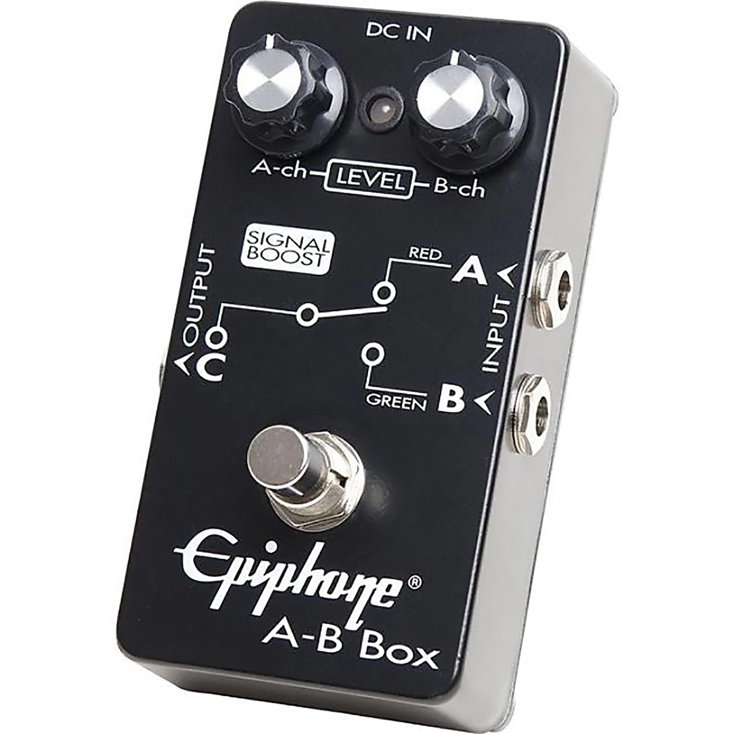 The Epiphone A/B Pedal allows you to have two different inputs to direct to the same output. You can change between A and B inputs with one stomp.