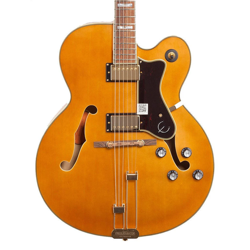 Epiphone’s timeless Broadway guitar was one of those classics and inspired the dreams of many guitarists. Originally introduced in 1931, this beautiful instrument still sets the standard for jumbo jazz boxes and is also one of the largest, measuring 17″ across the lower bout for unmatched full-range, big jazz tone.