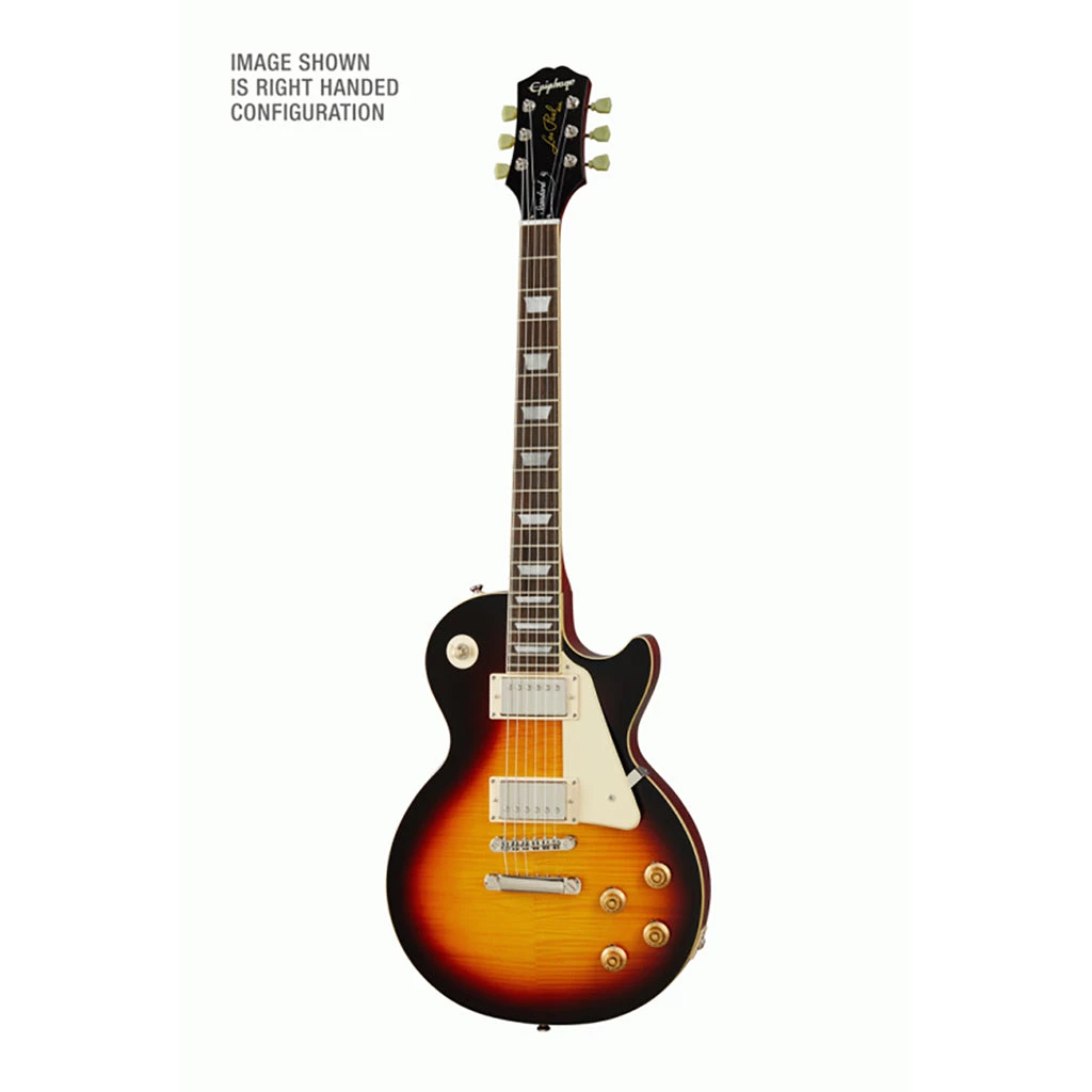 The Les Paul Standard 50s models are part of Epiphone’s new Inspired by Gibson Collection and recreate the sound of 1950s era Les Pauls. Featuring a classic Mahogany Body with a Maple cap and Mahogany neck with long neck tenon. Powered by ProBucker™ humbuckers with 50s style wiring and CTS electronics. Available in Metallic Gold, Vintage Sunburst, and Heritage Cherry Sunburst. Epiphone’s long friendship with Mr. Les Paul began in 1940 when Les built one of the world’s first solid body electric guitars while working nights at the original Epiphone factory in Manhattan. Les’ first solidbody guitar, nicknamed “the Log”, would go on to inspire the Les Paul Standard, what many consider the greatest electric guitar ever made.