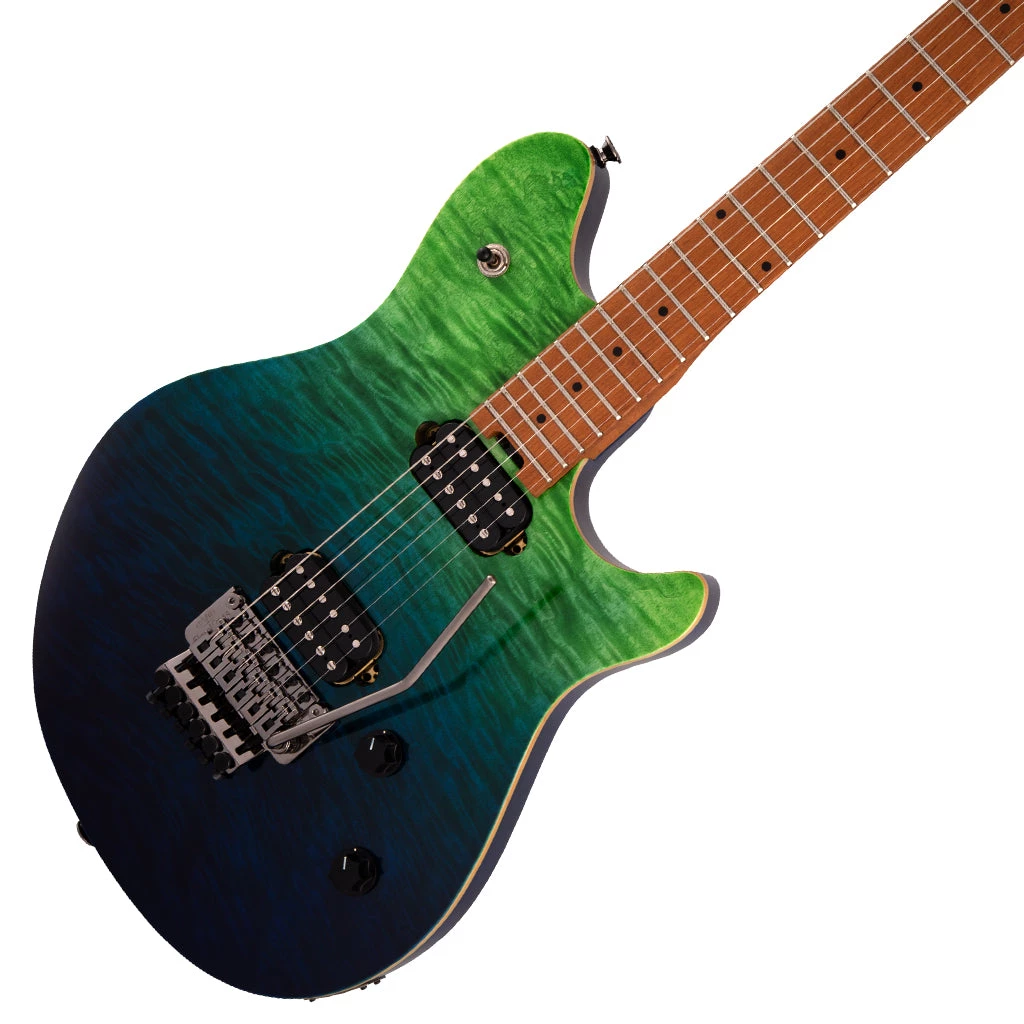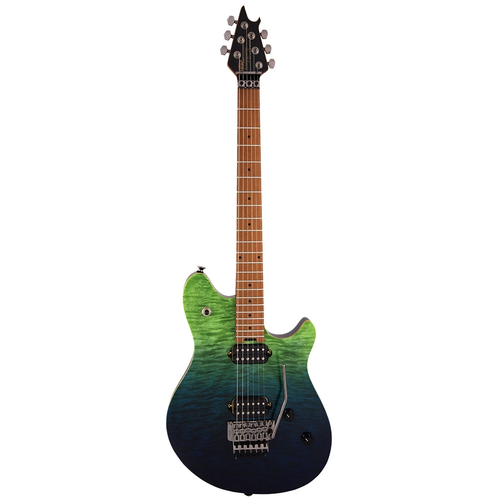 Dual EVH® Wolfgang humbucking pickups mounted directly to the body increase vibration transfer, resulting in sustain for days on end. Two black knurled control knobs have been dialed-in to Van Halen’s exacting specifications—the smooth-feeling 500k pots make it easy to find a unique sound while retaining the crisp high-end sparkle of the Wolfgang pickups. The EVH-branded Floyd Rose® Special bridge and R2 locking nut consistently keep the instrument in tune through the deepest whammy dives and horse whinnies.