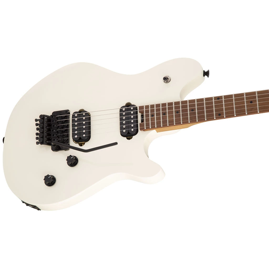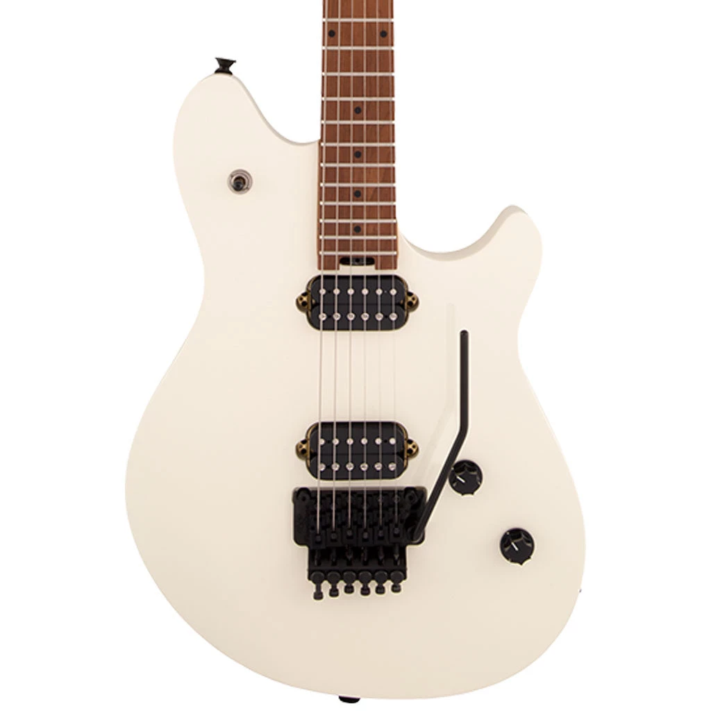 Dual EVH® Wolfgang humbucking pickups mounted directly to the body increase vibration transfer, resulting in sustain for days on end. Two black knurled control knobs have been dialed-in to Van Halen’s exacting specifications—the smooth-feeling 500k pots make it easy to find a unique sound while retaining the crisp high-end sparkle of the Wolfgang pickups. The EVH-branded Floyd Rose® Special bridge and R2 locking nut consistently keep the guitar in tune through the deepest whammy dives and horse whinnies.