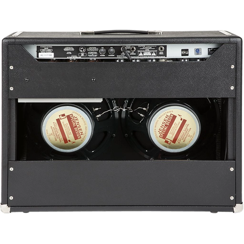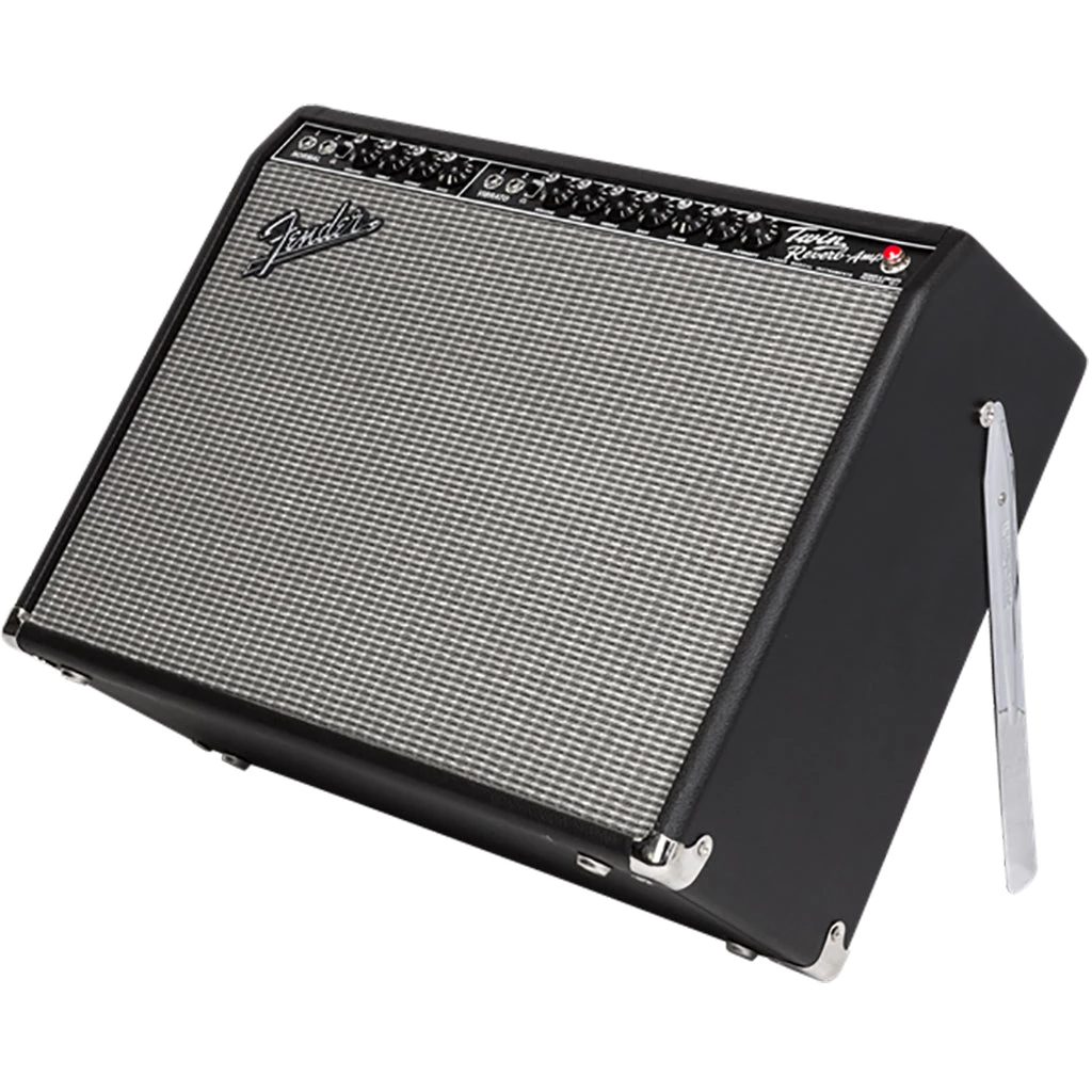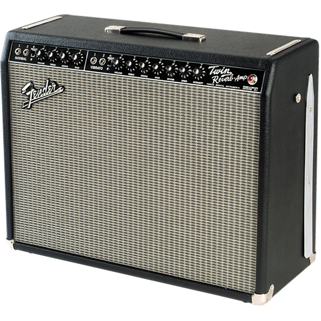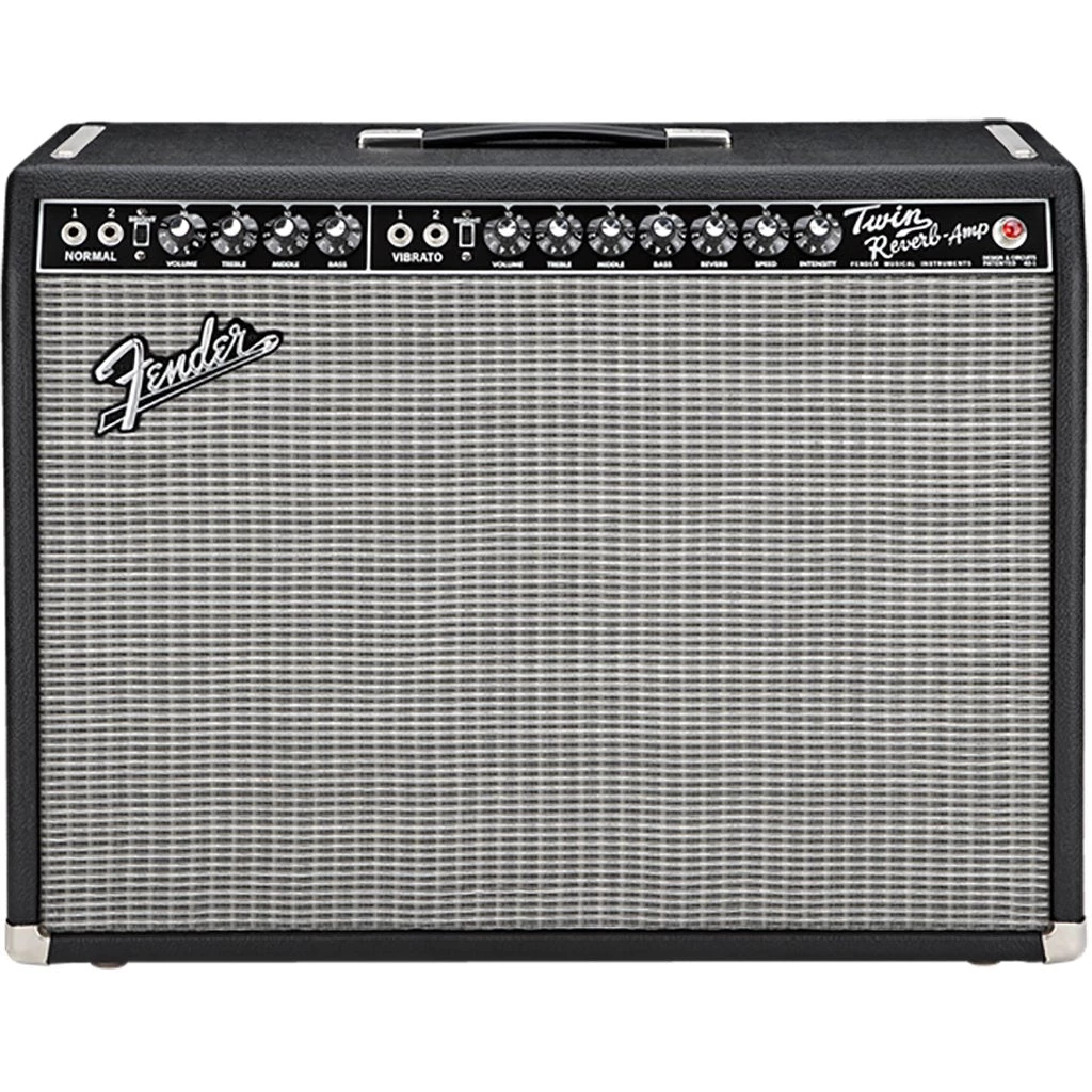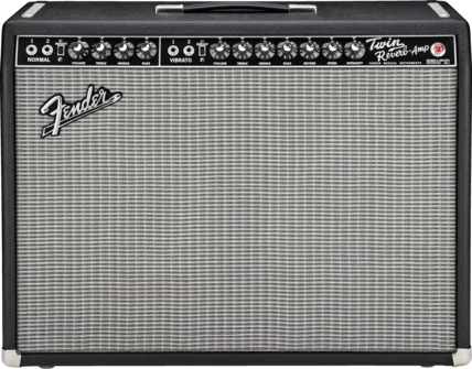 The 85-watt (at 4 ohms) reissue ’65 Twin Reverb™ features four 6L6 Groove Tubes® output tubes, four 12AX7 preamp tubes, two 12AT7 preamp tubes, two 12” 8-ohm Jensen® C-12K speakers, dual channels (normal and vibrato), Fender® reverb, vibrato, two-button reverb and vibrato on-off footswitch, tilt-back legs, black textured vinyl covering and silver grille cloth.