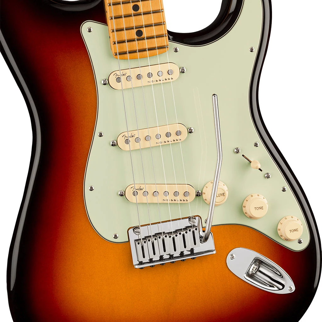 American Ultra is our most advanced series of guitars and basses for discerning players who demand the ultimate in precision, performance and tone. The American Ultra Stratocaster features a unique “Modern D” neck profile with Ultra rolled fingerboard edges for hours of playing comfort, and the tapered neck heel allows easy access to the highest register. A speedy 10”-14” compound-radius fingerboard with 22 medium-jumbo frets means effortless and accurate soloing, while the Ultra Noiseless™ Vintage pickups and advanced wiring options provide endless tonal possibilities – without hum. The sculpted rear body contours are as beautiful as they are functional and the S-1 switch adds the neck pickup in to any switch position. This versatile, state-of-the-art instrument will inspire you to push your playing to new heights. Other features include sealed locking tuning machines, chrome hardware and bone nut. Includes premium molded hardshell case.