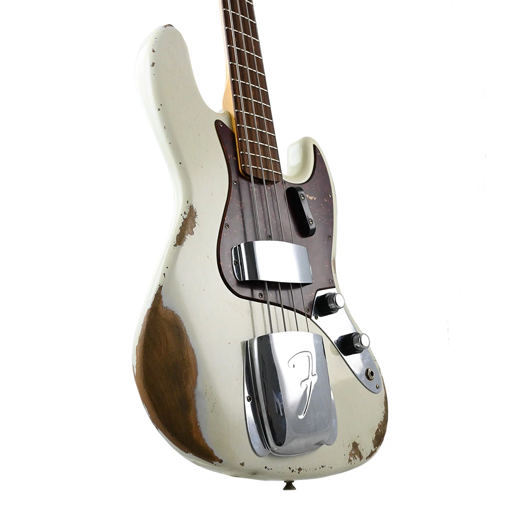 This is a bass built to be used and is relic’d to match. While at first look a standard Jazz Bass, this instrument is finished in Heavy Relic’d Aged Olympic White with a 4-Ply tortoiseshell pickguard to compliment and offset the bright whiteness of the paint. The dual hand-wound Vintage J Bass pickups are controlled via vintage concentric volume and tone, offering independent tone and volume for the middle and bridge pickups.