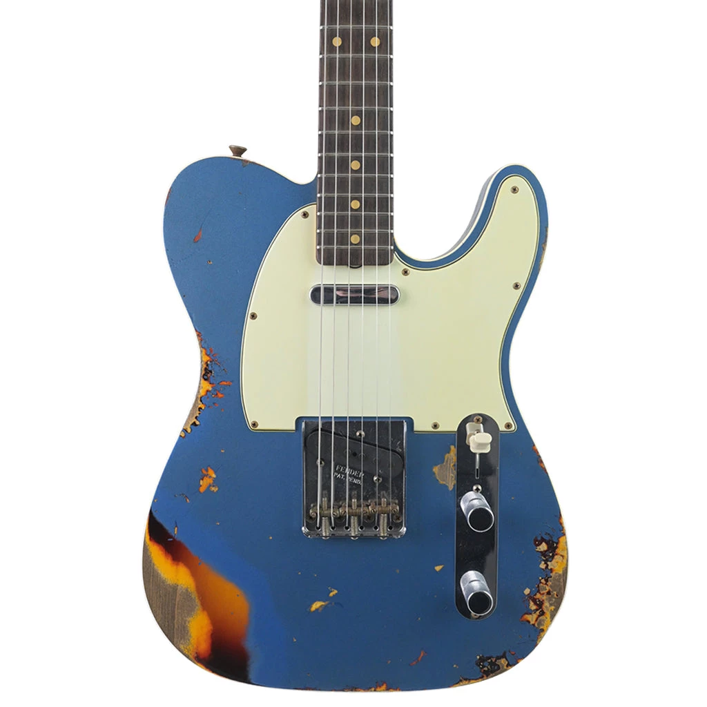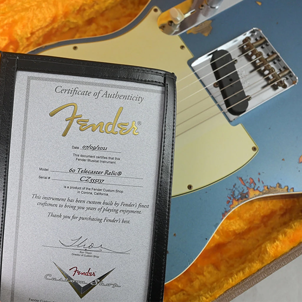 The 1960 Telecaster Custom Heavy Relic brings a worn-in rawness to the refined double-bound classic. Its hand-selected two-piece ash body wears a splendid Heavy Relic lacquer finish with nitro double binding. The rift-sawn maple neck has a ’60-style “oval C” profile, topped by a 9.5”-radius flat-lam rosewood fingerboard with 21 narrow tall frets for perfect bends and chording along the entire length of the neck.