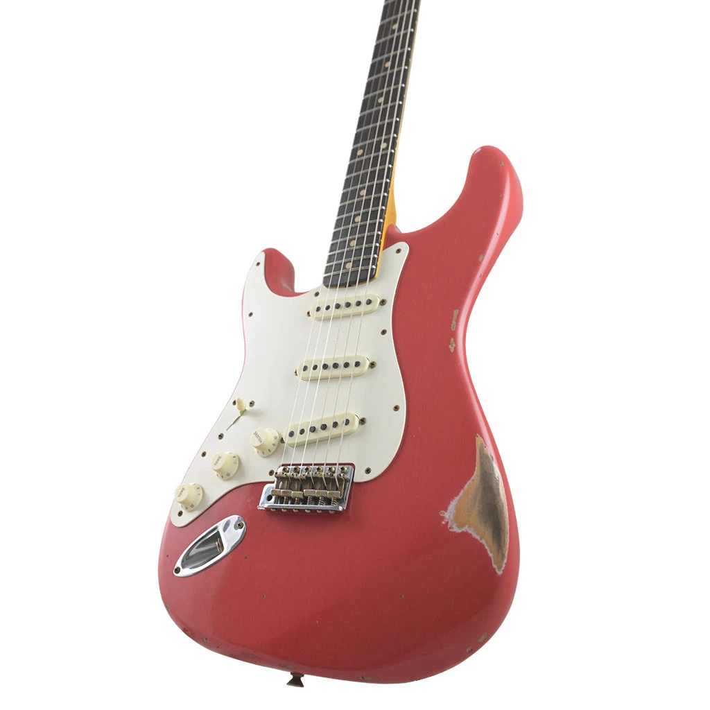 The left handed Fender Custom Shop LTD 59 Stratocaster features an alder body, 60s oval “C” rift sawn maple neck, rosewood fretboard, jumbo frets, vintage tuners, and fitted with hand-wound Texas special single coil pickups. The body is finished in Aged Fiesta Red.
