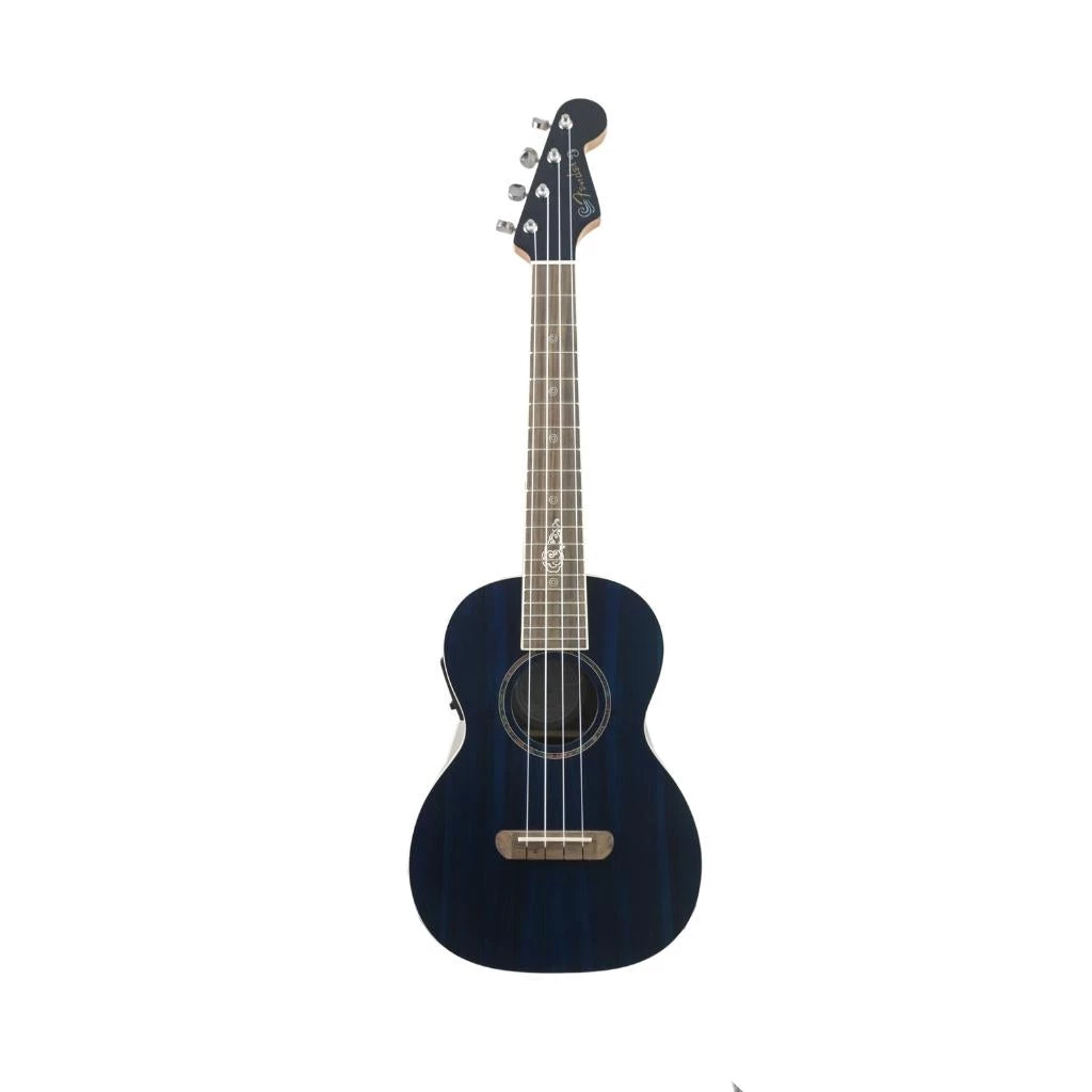 The Dhani Harrison Signature Ukulele is available in two finishes, with unique fretboard inlays and engraved designs on the back of the instrument that hold personal significance to Harrison. Designed for live performance, both are tenor sized and feature a solid ovangkol top, ovangkol back and sides, and a custom ¾ body depth. Upgraded Fender electronics include a tone knob, an additional feature not commonly included on many ukuleles, but an essential one for expanding sonic possibilities. With its distinctive build and eye-catching aesthetics to match, the Dhani Harrison Signature Ukulele will challenge you to expand your musical horizons.