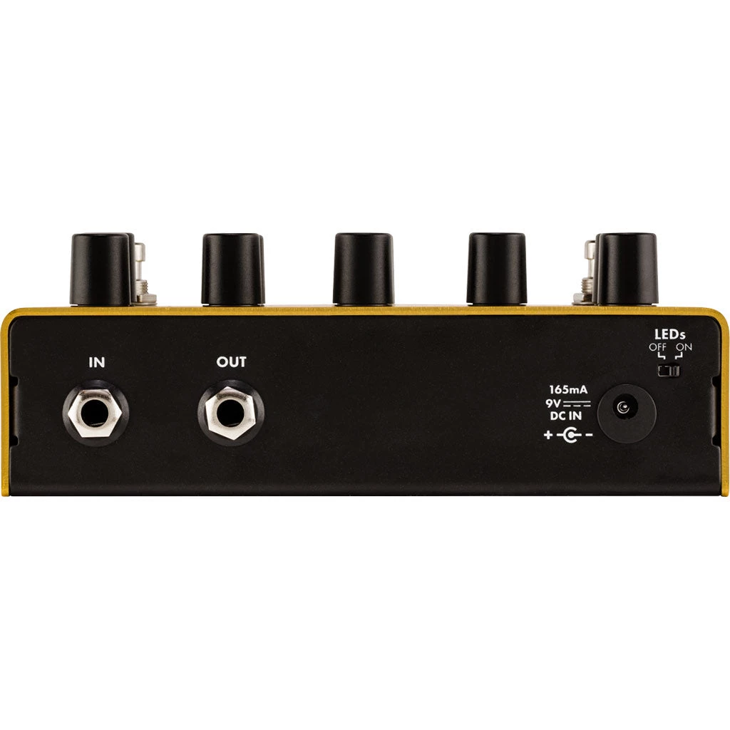 Designed by Fender’s in-house tone gurus, the Duel Pugilist is an all-original Fender circuit. The chassis is crafted from lightweight, durable anodized aluminum, and the LED-backlit knobs show your control settings on a dark stage at a glance.