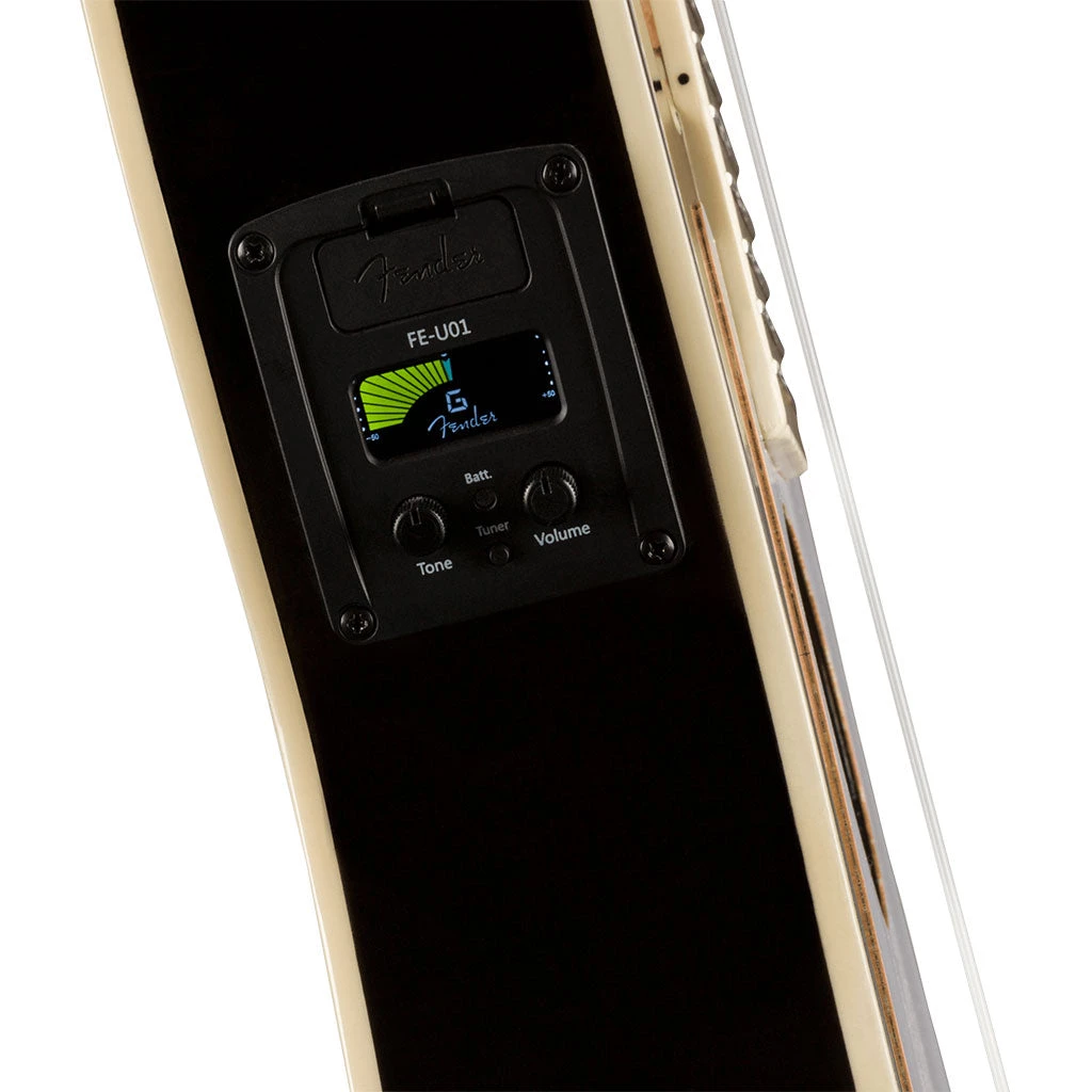 Tipping the hat to Fender’s iconic guitar body shapes, the Fullerton Series ukuleles are nothing short of electric. The Fullerton Stratocaster departs from traditional ukulele construction and aesthetics, while remaining faithful to Fender’s history. The Stratocaster ukulele’s pickguard, signature finish color options, and 4-in-line headstock can only be categorized as quintessentially Fender. The Fullerton Stratocaster is the perfect choice for the ukulele player looking to inject the spirit of rock ’n roll into every performance.