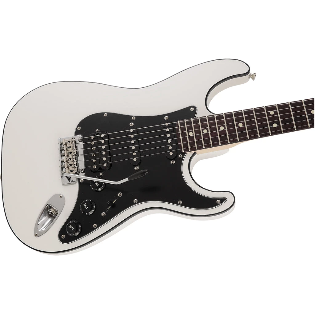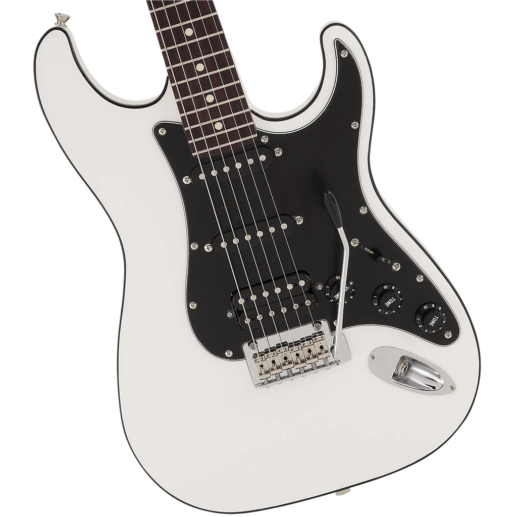 Aeordyne II, featuring a round-top design for improved playability, incorporates a 2-point tremolo bridge, standard-style tuners, and a 9.5-inch radius neck mounted on high quality alder body. This instrument boasts specs and style tailored for modern players. The Aerodyne II Stratocaster® HSS model is a medium scale guitar, providing unique feel and tone.
