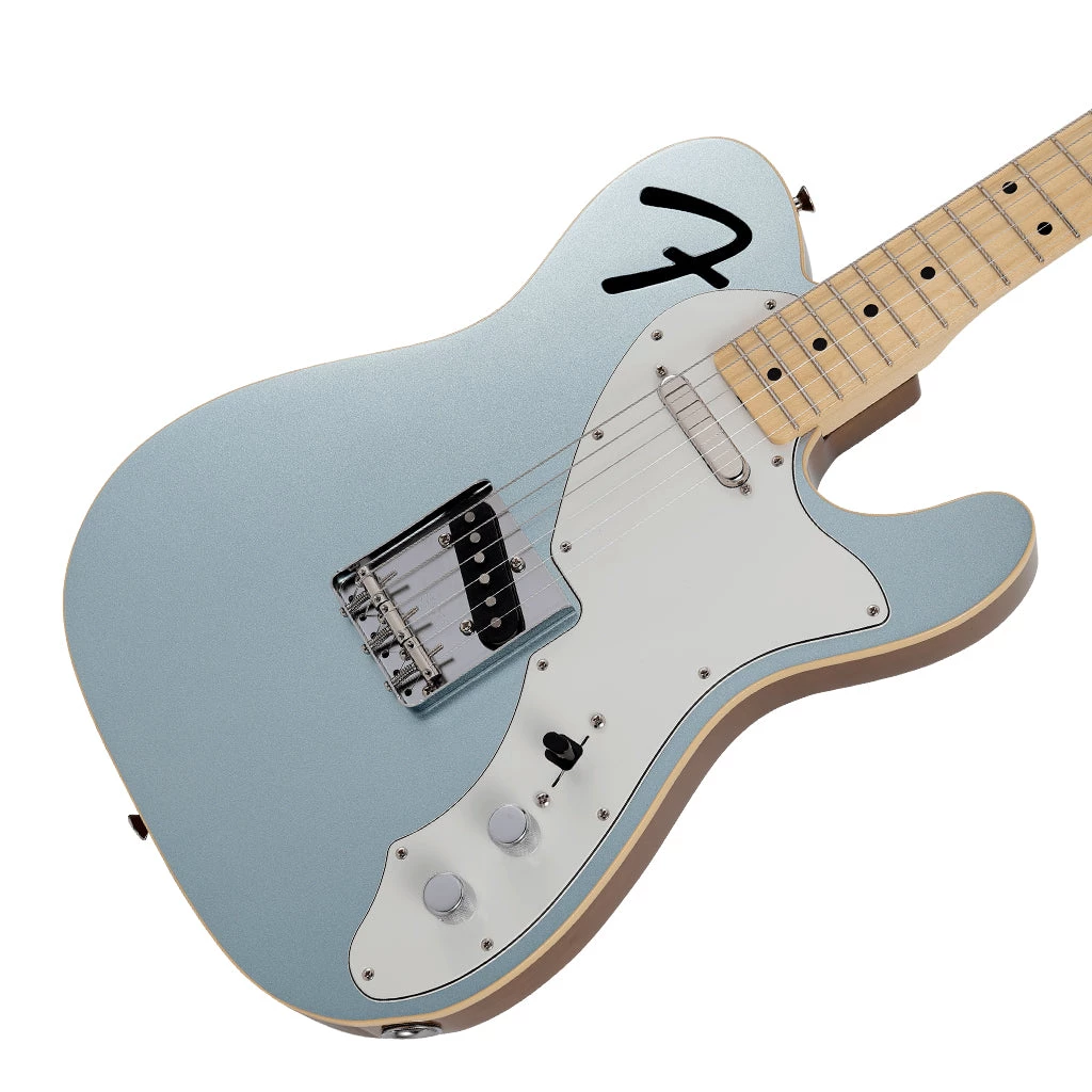 A new meaning to word ‘F-hole’! This Thinline tele, finish in Penny metallic over its ash body is a super special and unique instrument. A combination between a chambered and semi-hollow body, the ‘F’ hole at the upper bout of the guitar gives a unique resonance that doesn’t project too loudly, but feels more alive than a standard solid-body.