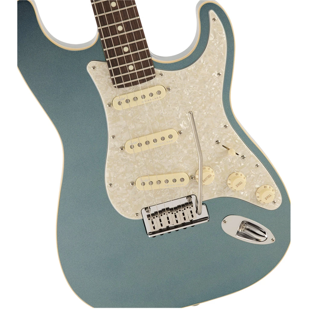 The Modern Series is the latest Made-in-Japan product line developed to provide the highest level of playability and tone to modern players with significantly playing skills. The high quality 3-ply alder body feature a sleek, stylish design, and the selected rosewood fingerboard neck is equipped with luminous side position dot inlays for improved visibility on stage. The new heel cut design and compound radius both contribute to enhanced playability, with smooth access to higher frets. Locking tuners provides tuning stability, and the bridge is equipped with a pop-in arm/two-point tremolo. 4th Generation Noiseless pickups deliver superior clear tone while reducing unwanted noise. Enjoy the next-generation Stratocaster® armed with cutting edge modern specifications. Deluxe Gig Bag included.