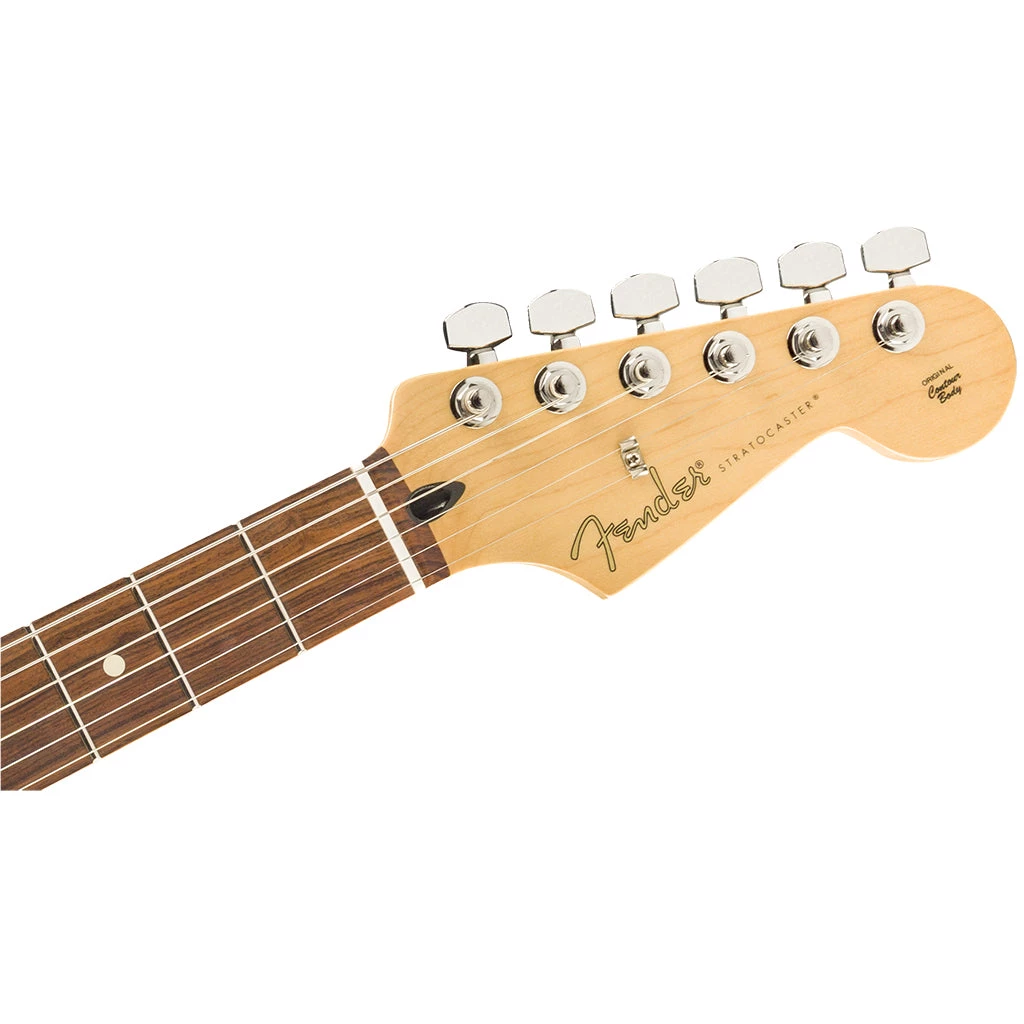 The Player Stratocaster features an alder body with a gloss finish. Three Player Series single-coil Stratocaster pickups and a “Modern C” shaped neck profile complete the guitar.